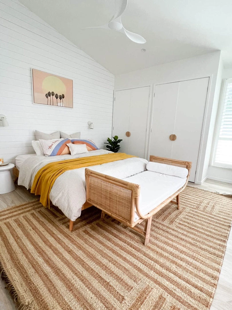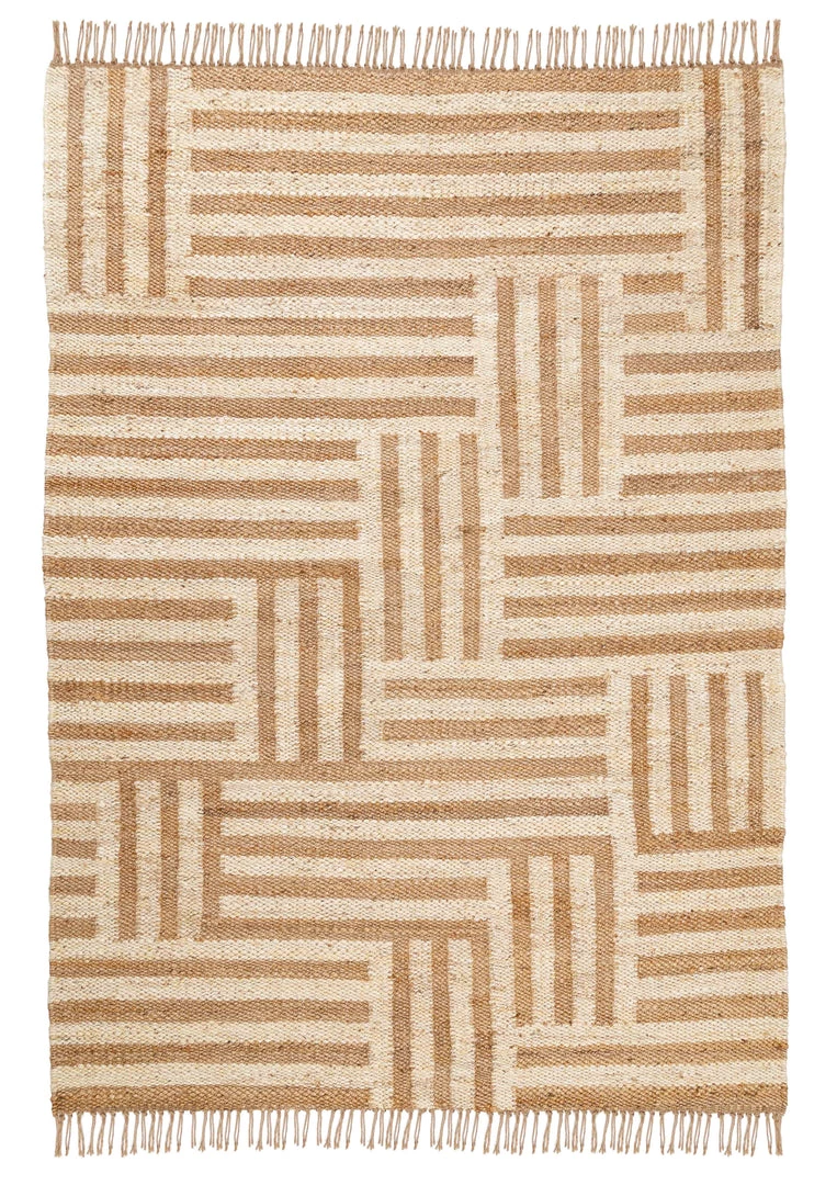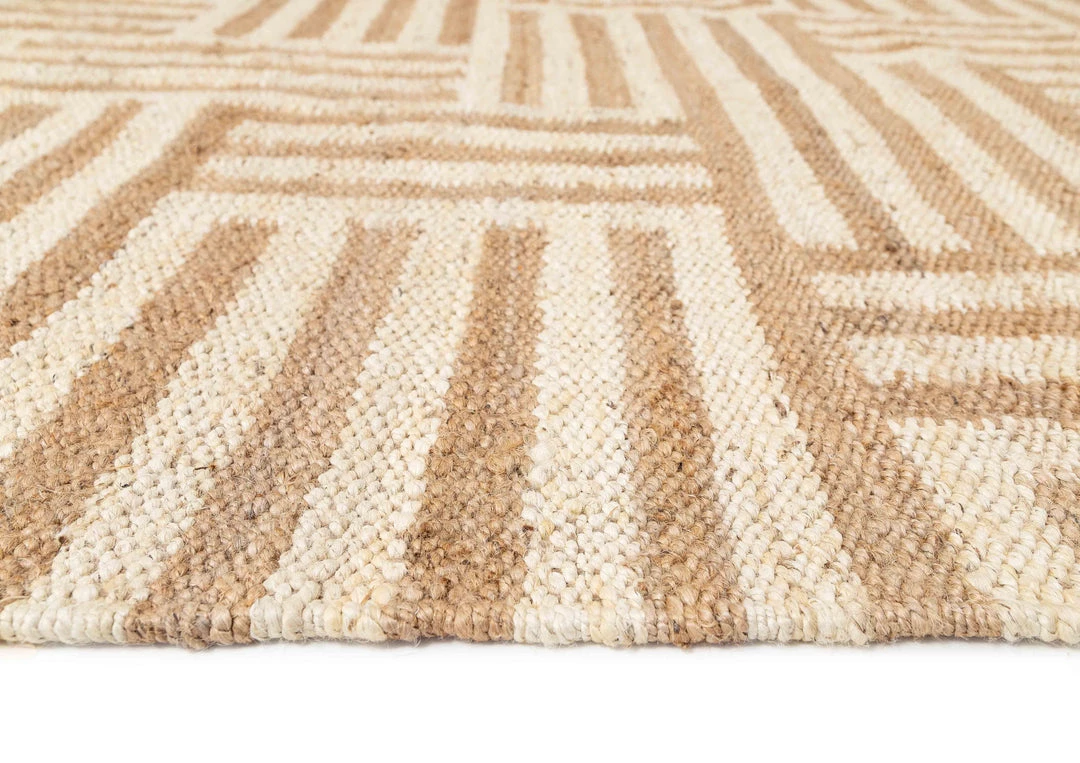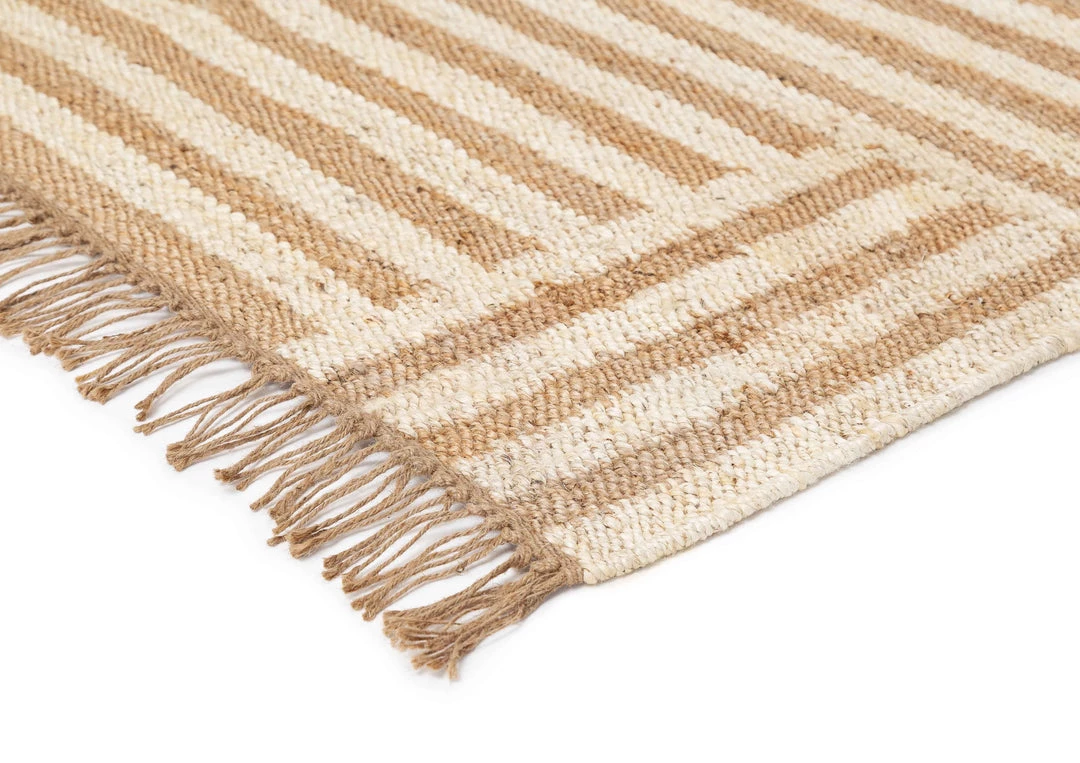 Abbie is a gorgeous natural and bleached jute rug woven by hand into a striped geometric pattern.