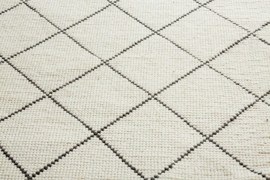 A timeless design piece to surpass the trends, Ada is a gorgeous wool blend rug in natural ivory colour and a simple diamond pattern, designed exclusively for the Miss Amara Collection. With a base of creamy white, Ada features a refined oversized diamond pattern in contrasting charcoal.