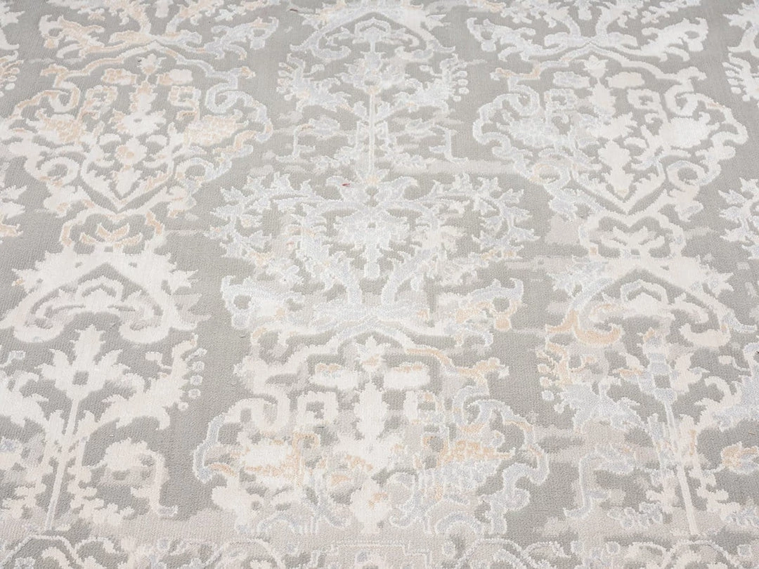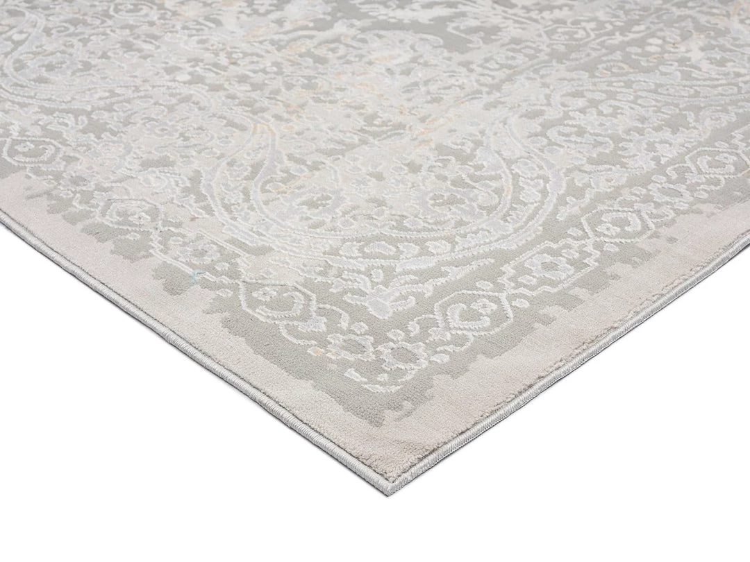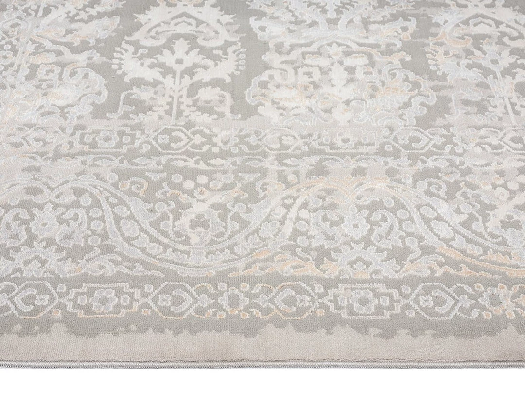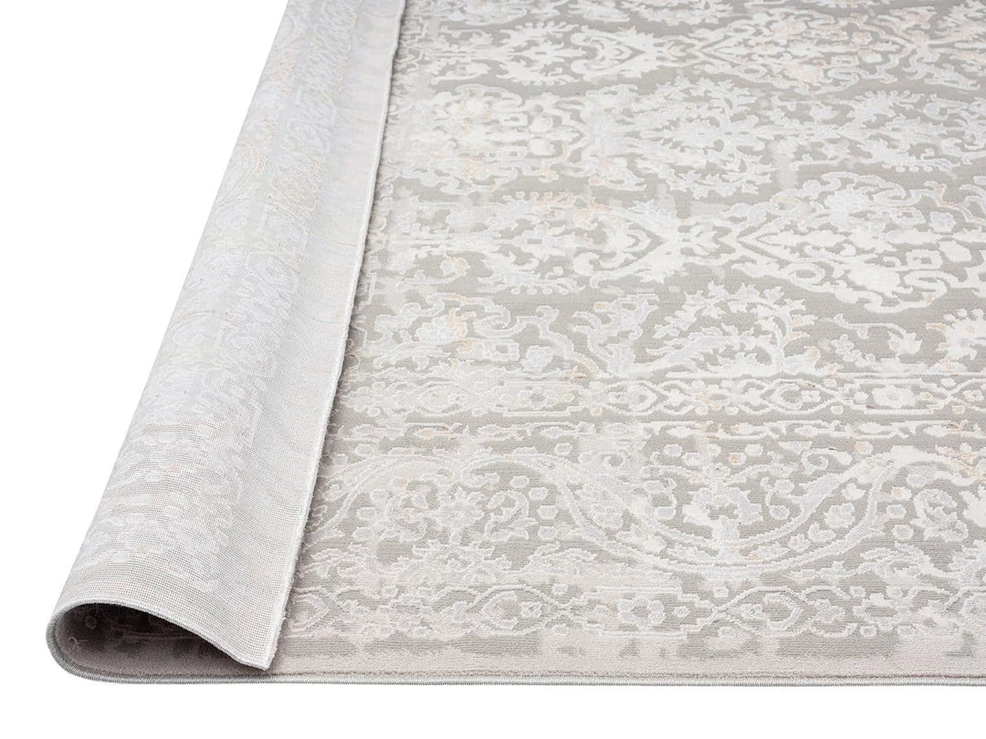 An exclusive design in the Miss Amara Collection, Aylin is a bordered vintage distressed style. Decorated with elaborate floral motifs and ornate patterns in transitional multi-tones of ivory, grey and hints of cream. A timeless and elegant addition to a modern, classic, bohemian or vintage space.