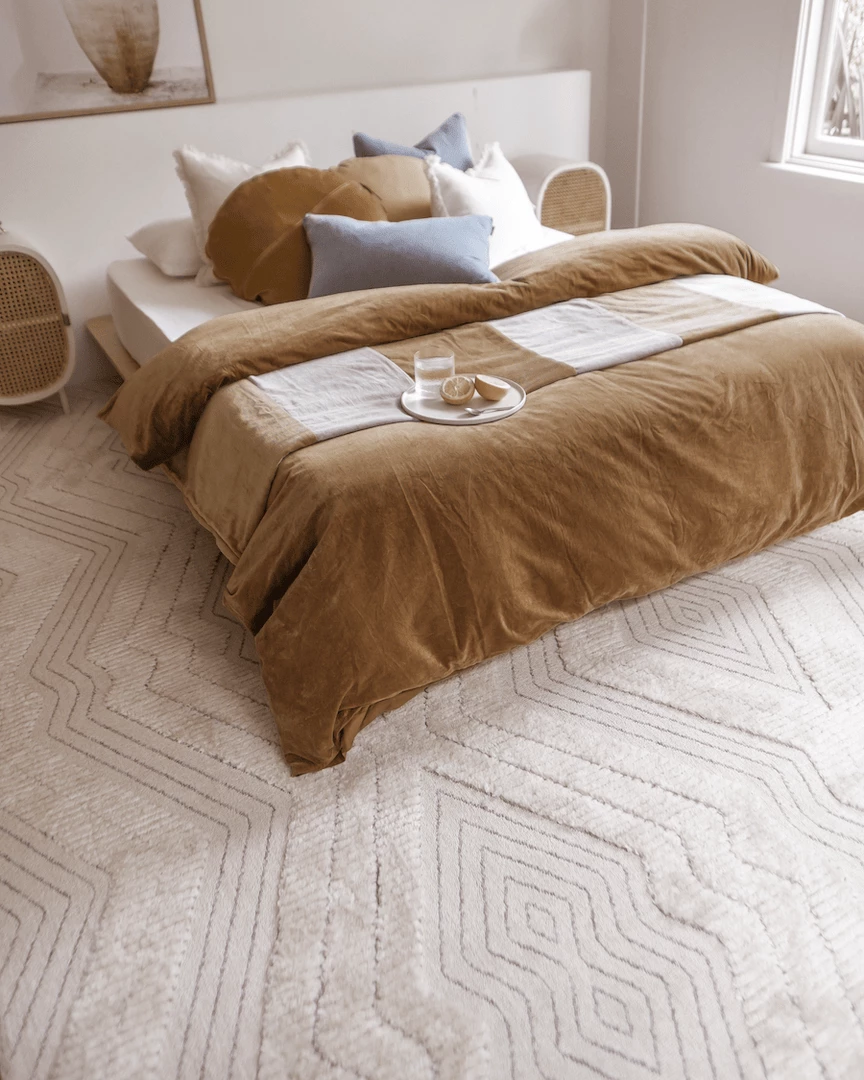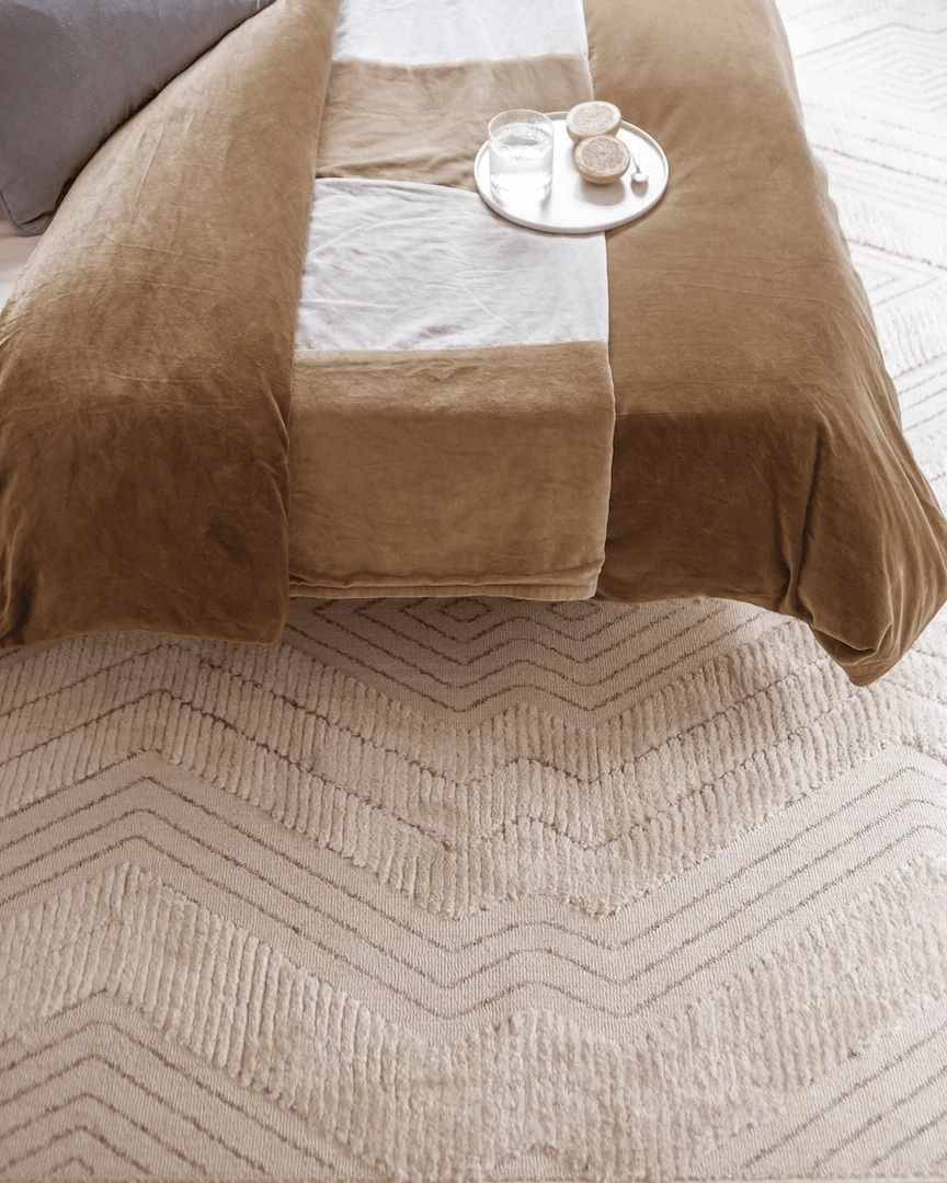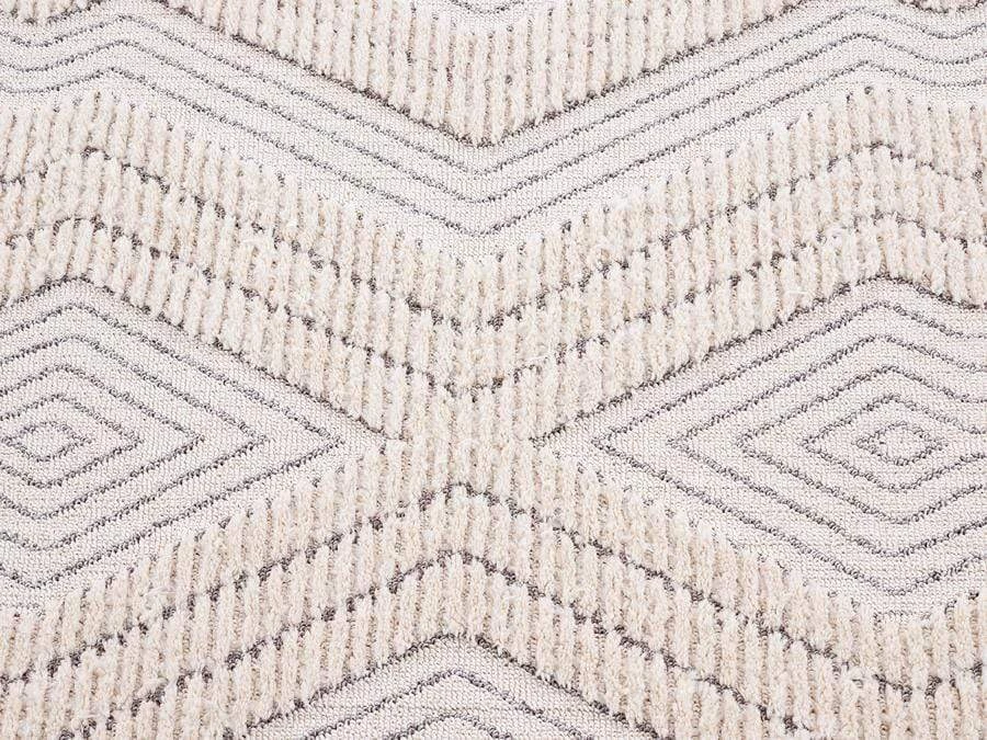 Custom designed by our in-house team Dayna is a modern take on the tribal style. Alternating tones of ivory cream and medium warm grey. A striking combination of a geometric pattern and tufted texture. Featuring a subtle high-low effect in her diamond detail to accent the overall design.
