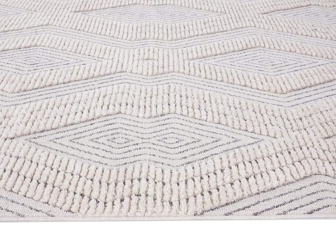 Dayna is an ivory and grey diamond detail rug featuring a unique tribal texture pattern.
