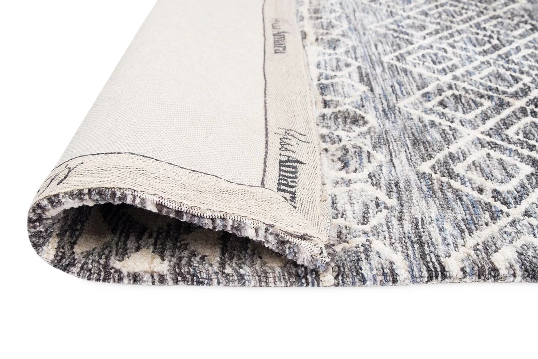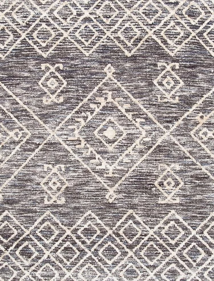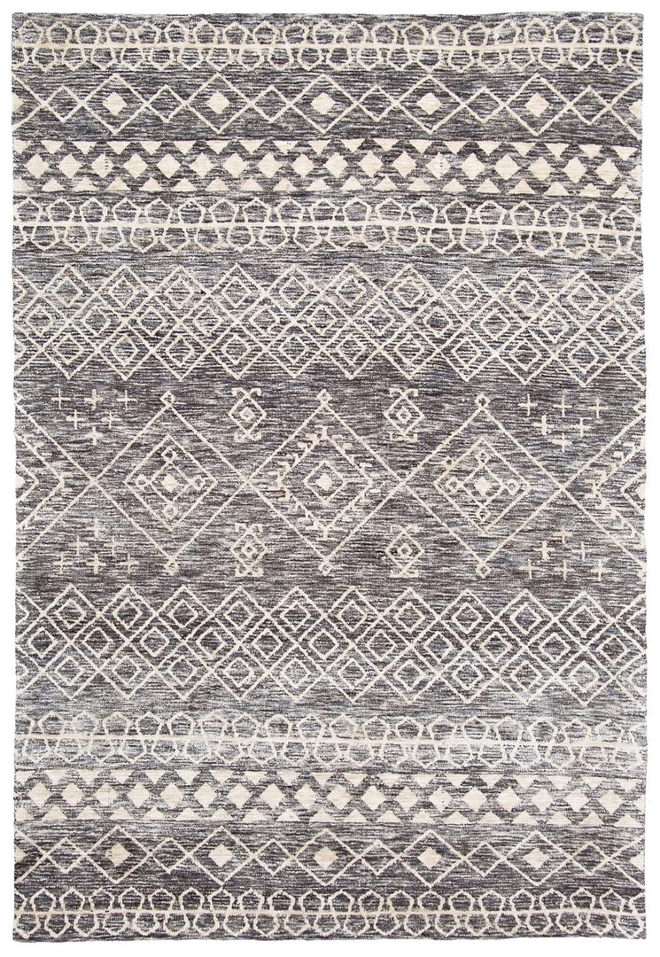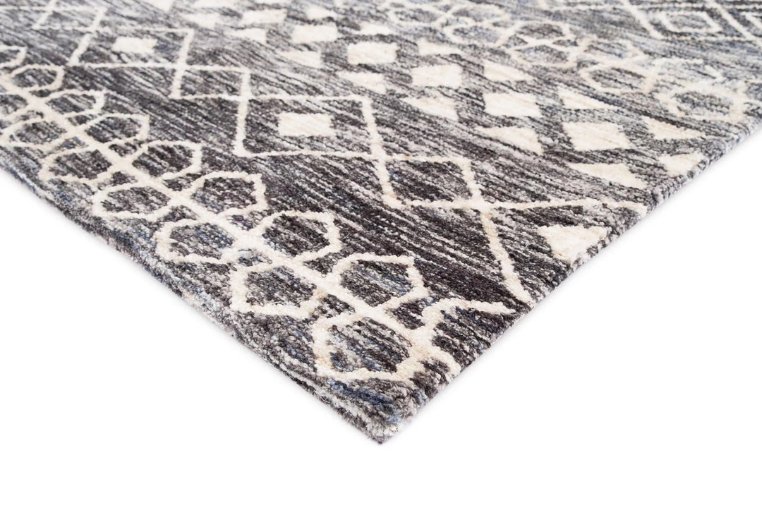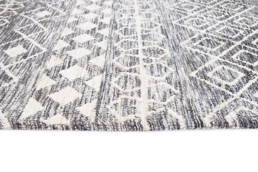 Emery is a gorgeous charcoal grey based rug with a diamond tribal print in multi-tones of ivory and cream with hints of blue.