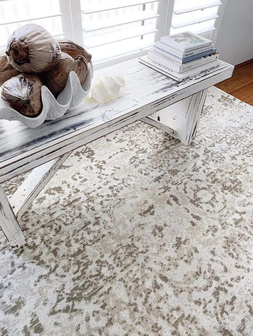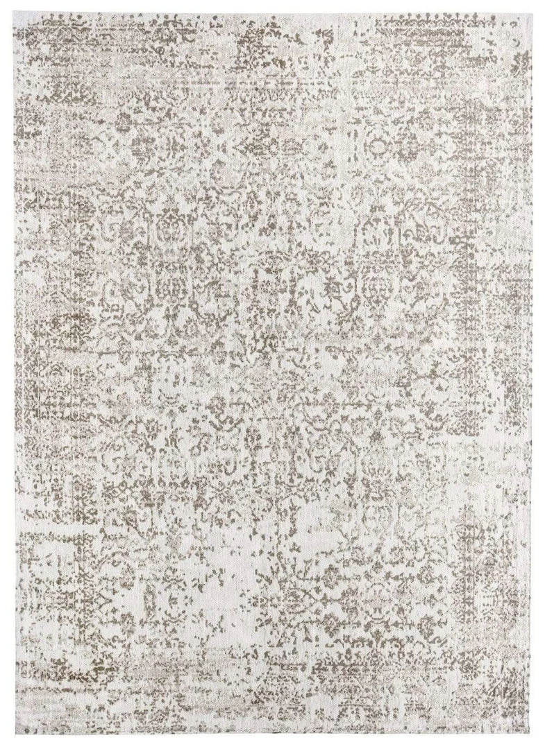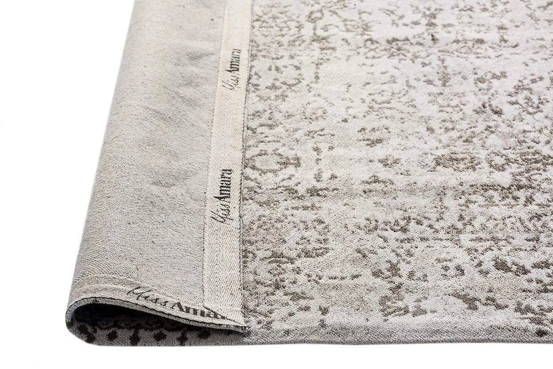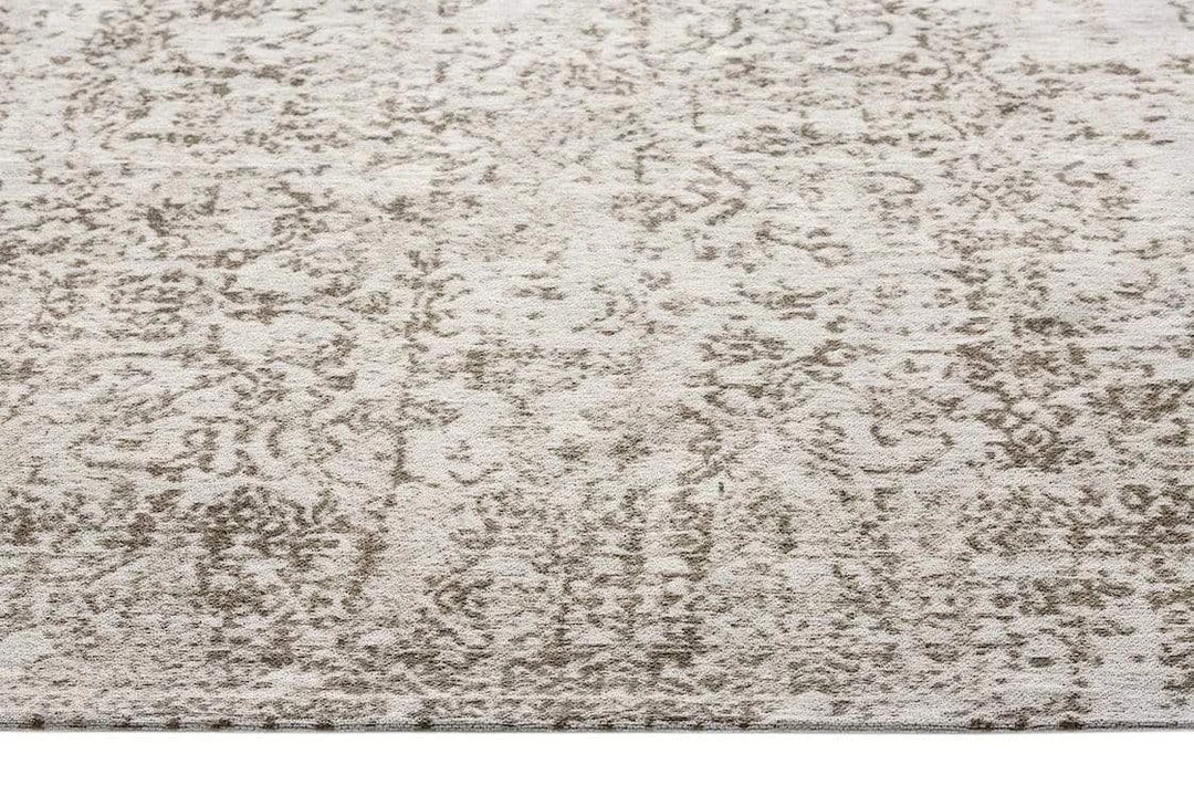 A truly unique design piece, Evangeline is a flatweave style transitional rug featuring a stone grey colourway and a distressed floral design.