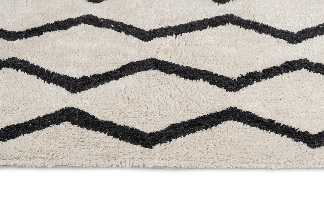 Set against a gorgeous natural cream base, Hayley features a zig zag pattern in a contrasting black and a soft pile of durable fibres. A timeless addition to a modern, classic, bohemian or vintage space.