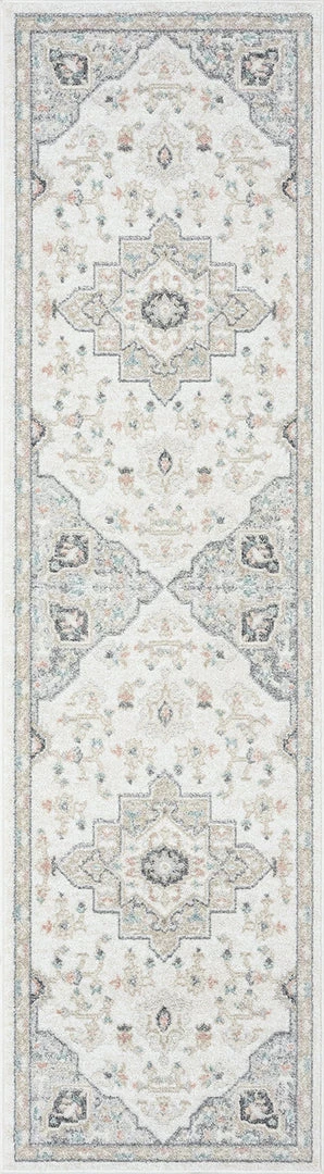 Ingrid is a stunning blend of cream and ivory with a traditional style floral design runner rug with a muted palette of grey, blue and pink.
