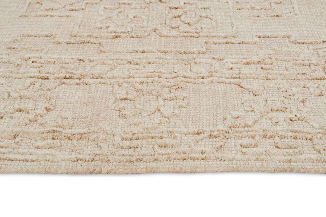 Jacklyn is a gorgeous ivory rug with a distressed floral medallion pattern in cream.