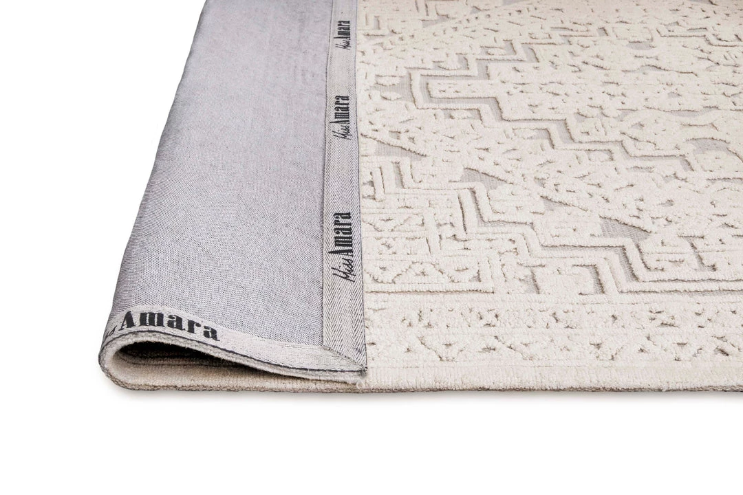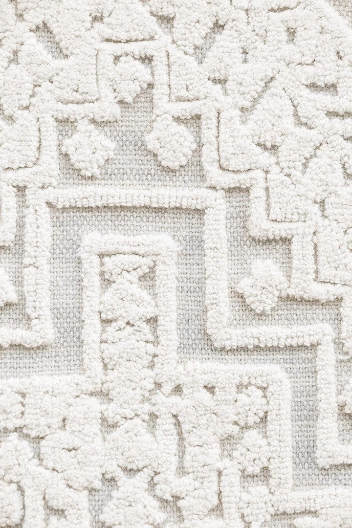 Handmade in India into a super soft 5mm blended high low weave of 90% wool 10% cotton construction with 100% cotton backing.