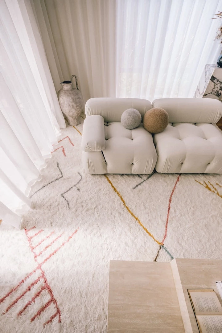 Lainie is a luxurious Berber style wool rug designed just for you by our in-house Miss Amara design team. Paying tribute to the Berber style’s tribal roots, the design heroes the beautiful natural tones of the wool and features a subtle tribal-inspired pattern with a modern coloured palette. The perfect addition to modern, bohemian and tribal style space!