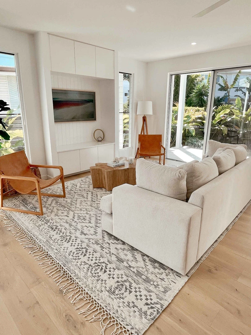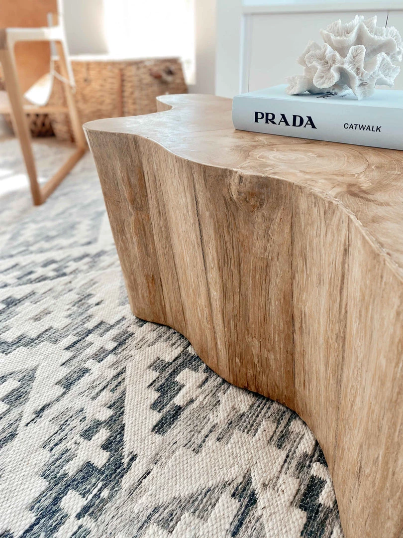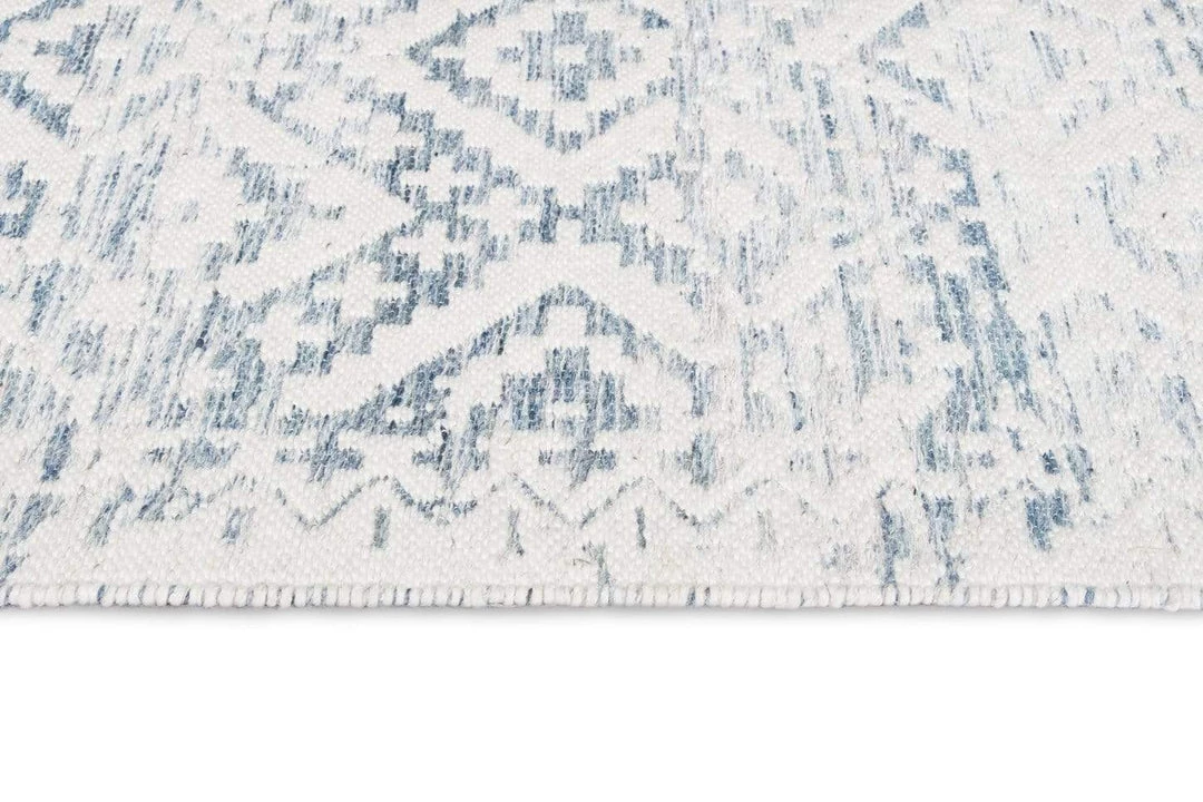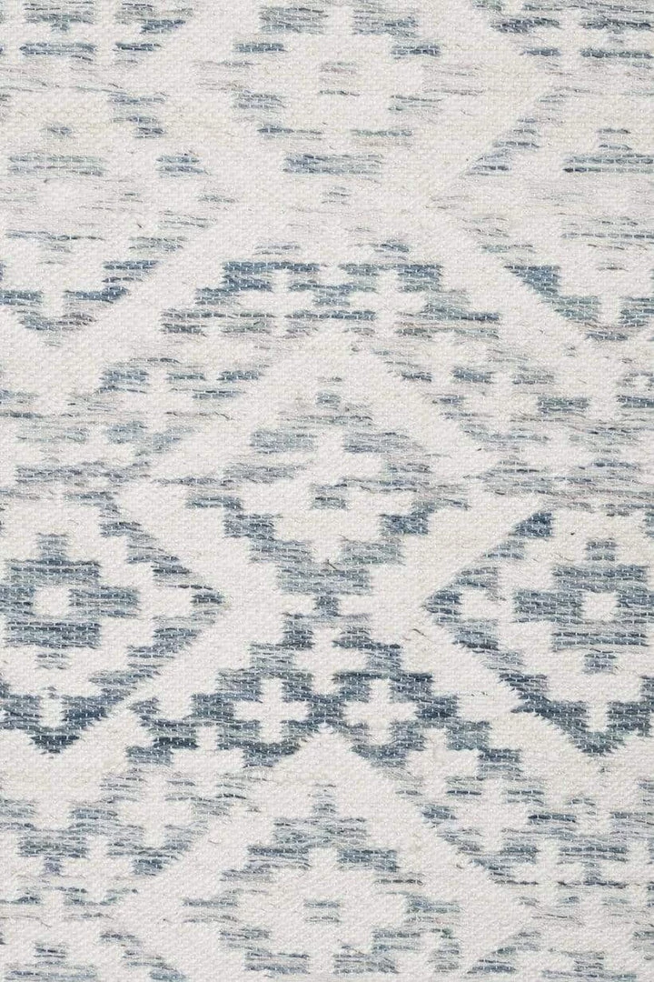 A unique and intricate diamond tribal print with a transitional multi-toned palette of blue, grey and ivory. This high design piece would blend beautifully in a modern, tribal, scandi, bohemian or coastal-inspired interior.