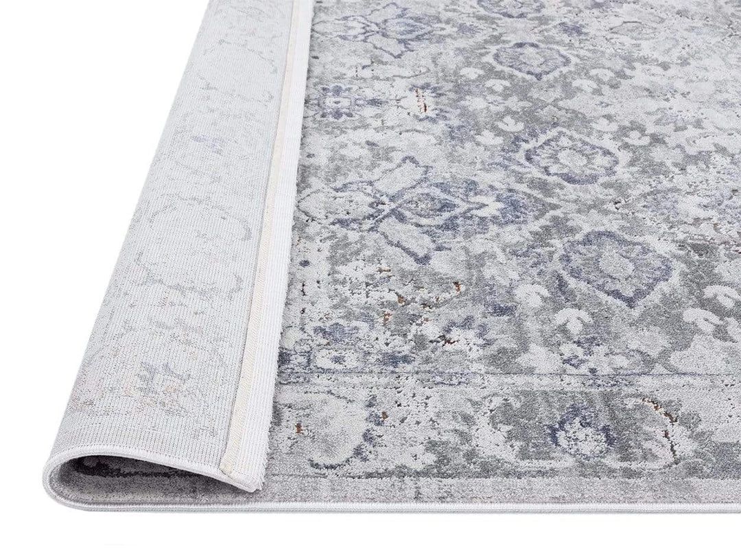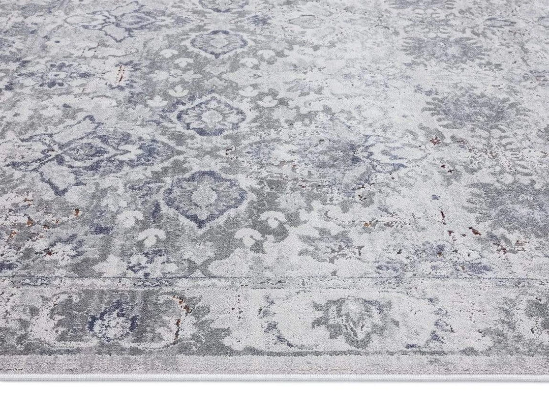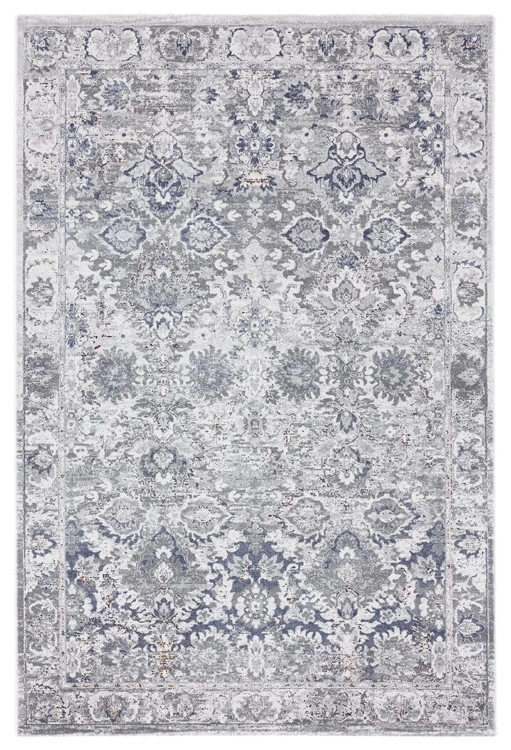 Lorna is an elegant blue, ivory and grey transitional motif rug.