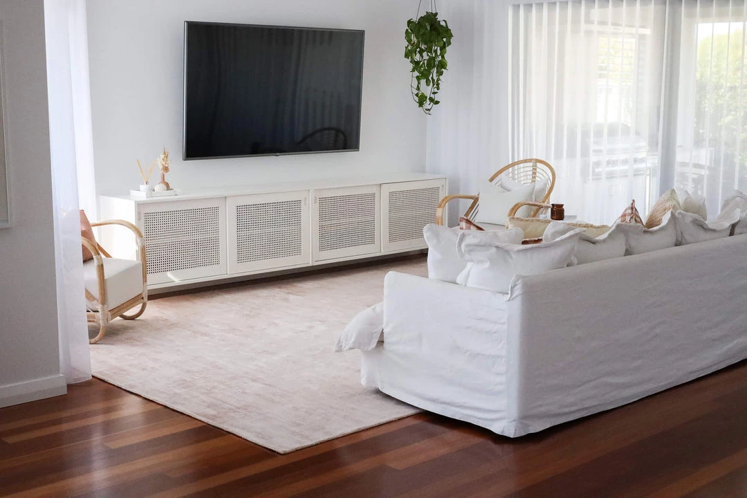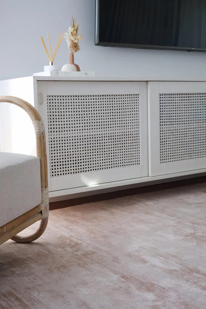 Lyla is a gorgeous blush peach rug in a modern luxurious distressed style.