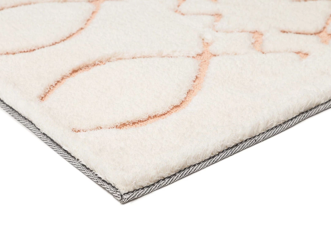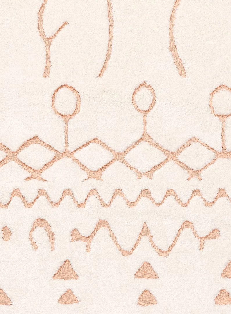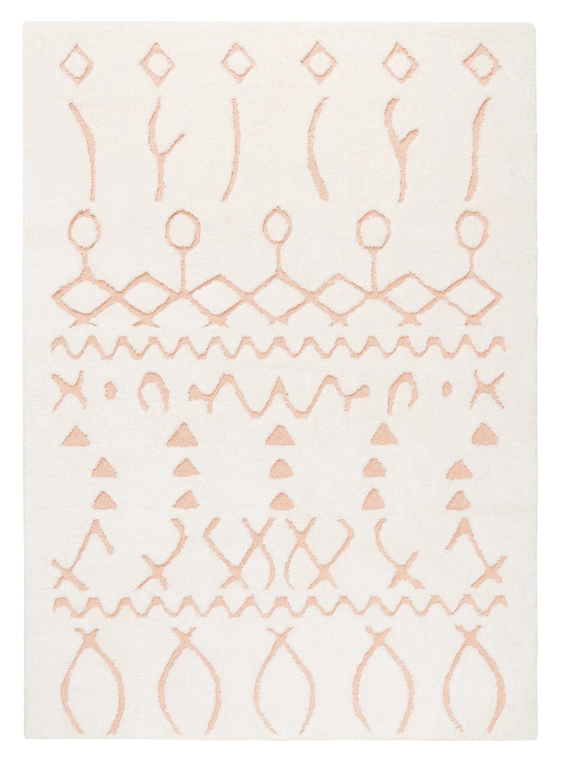 Matilda is a gorgeous carved shag rug, featuring a blend of cream complemented by an abstract tribal pattern in light peach tones.