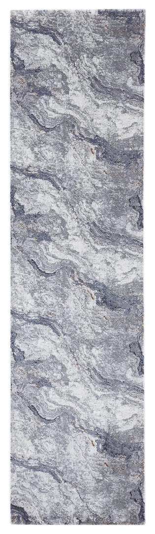 Nami is a unique blue, grey and bronze transitional abstract pattern runner rug.