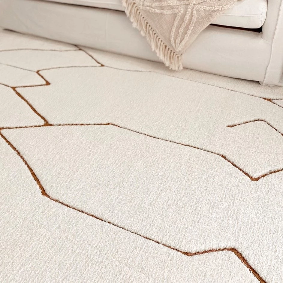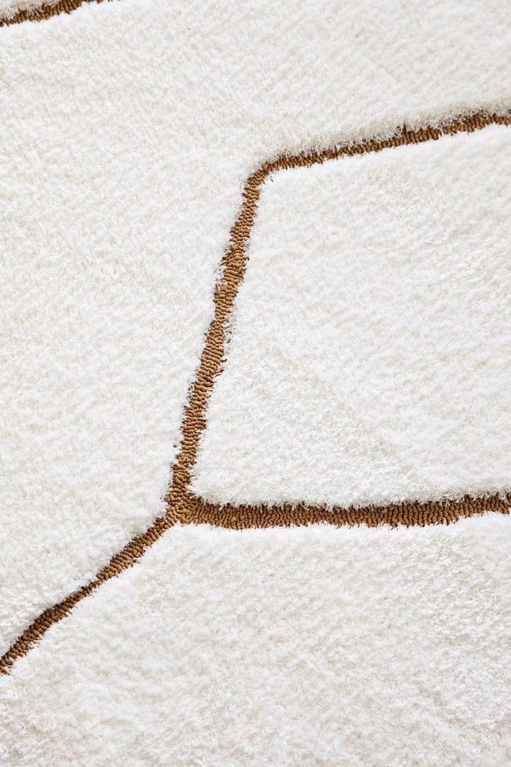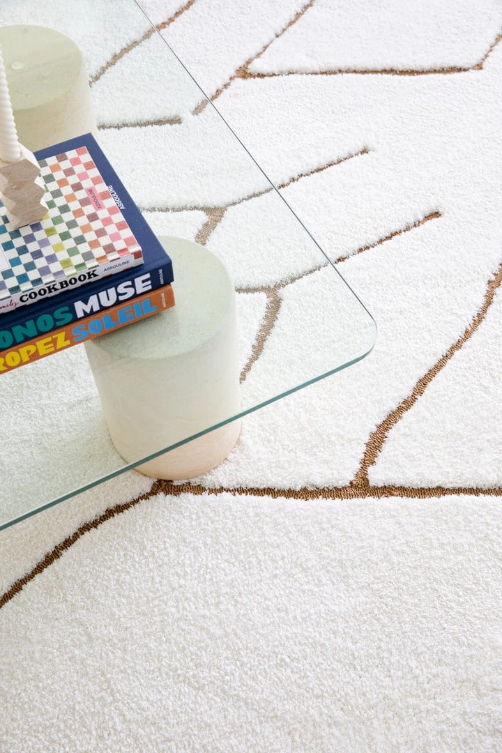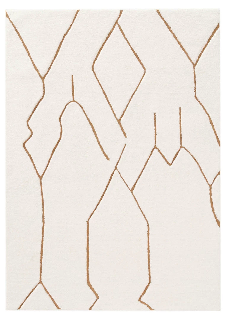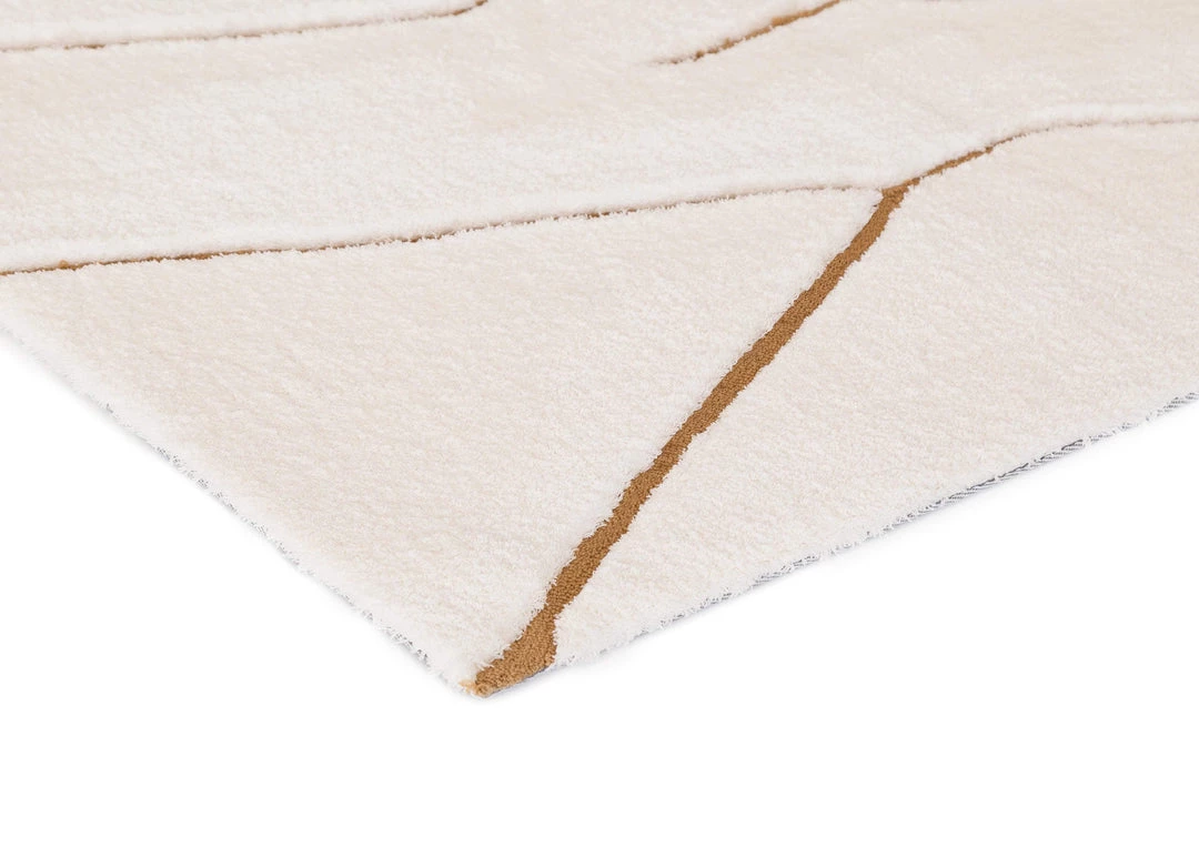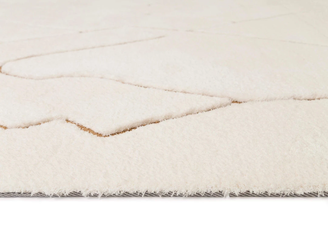 Nyla is a beautiful carved shag rug, featuring a blend of cream complemented by an abstract tribal pattern in gold.