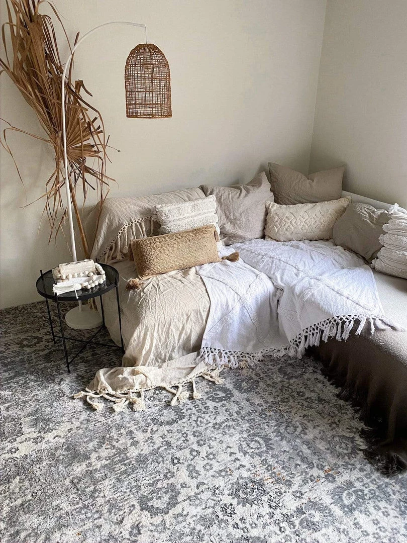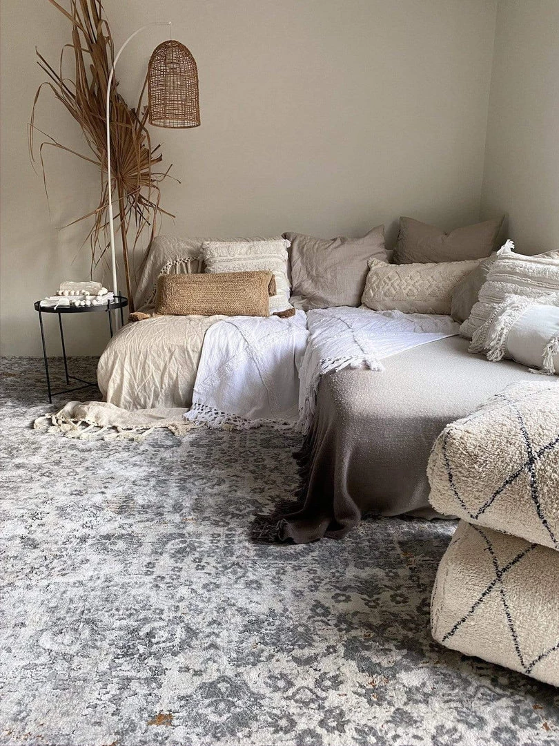 Taking inspiration from the ancient old world charm of Egyptian designs, with a muted palette of grey multi tones with hints of rust bronze in a transitional motif design. Ophelia is finished with a faded and distressed look to add to the vintage feel of this style.