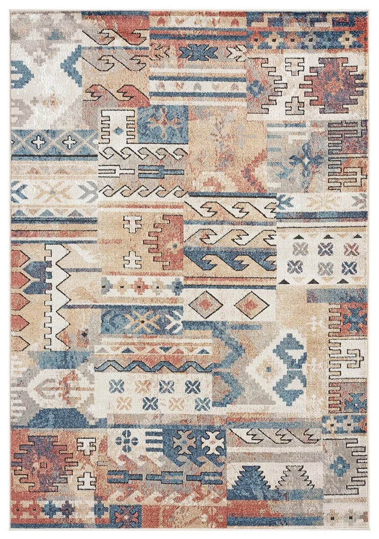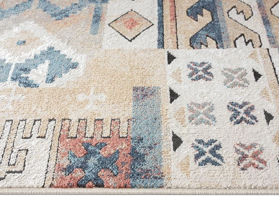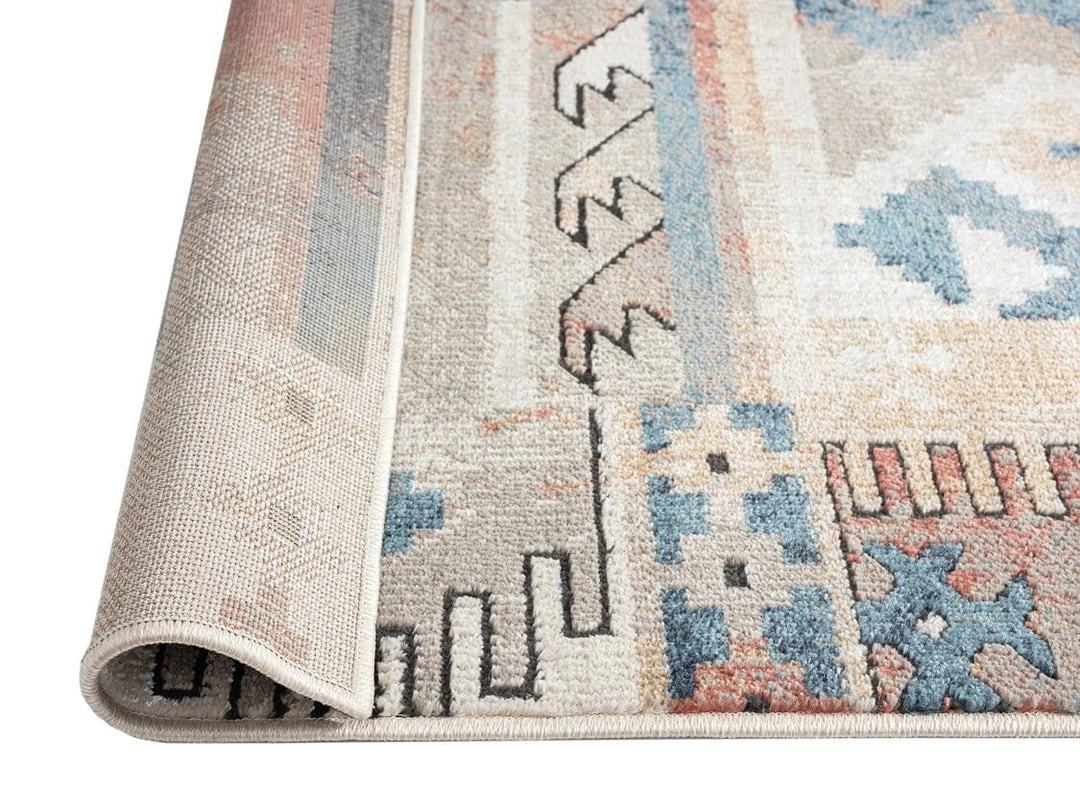 An exclusive design in the Miss Amara Collection, Pippa features a distressed look to give it a vintage feel. Decorated with lined tribal patterns in transitional multi-tones of warm peach, orange, blue and cream. A timeless and stylish addition to a modern, tribal, bohemian or vintage space.