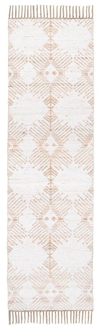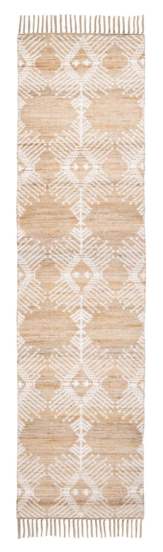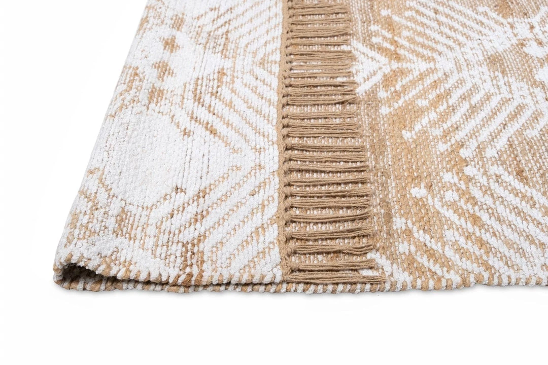 Rosie is a gorgeous natural brown jute rug with a tribal diamond lined pattern in white.