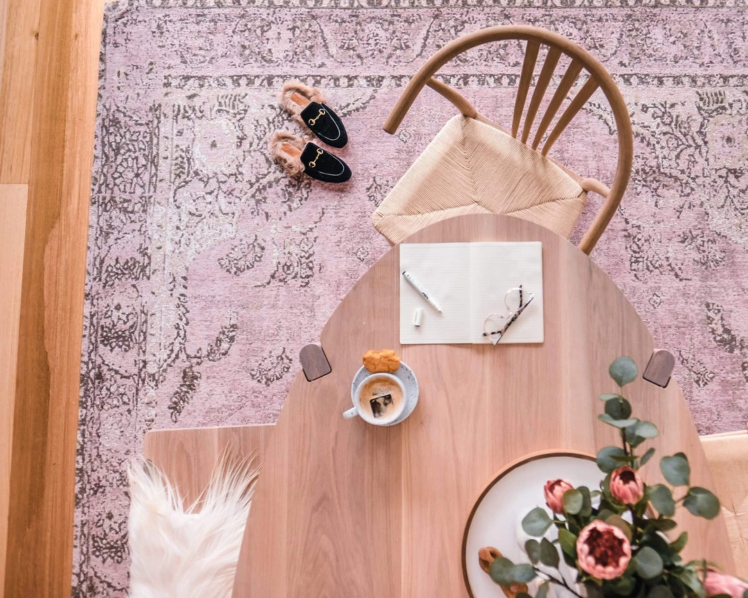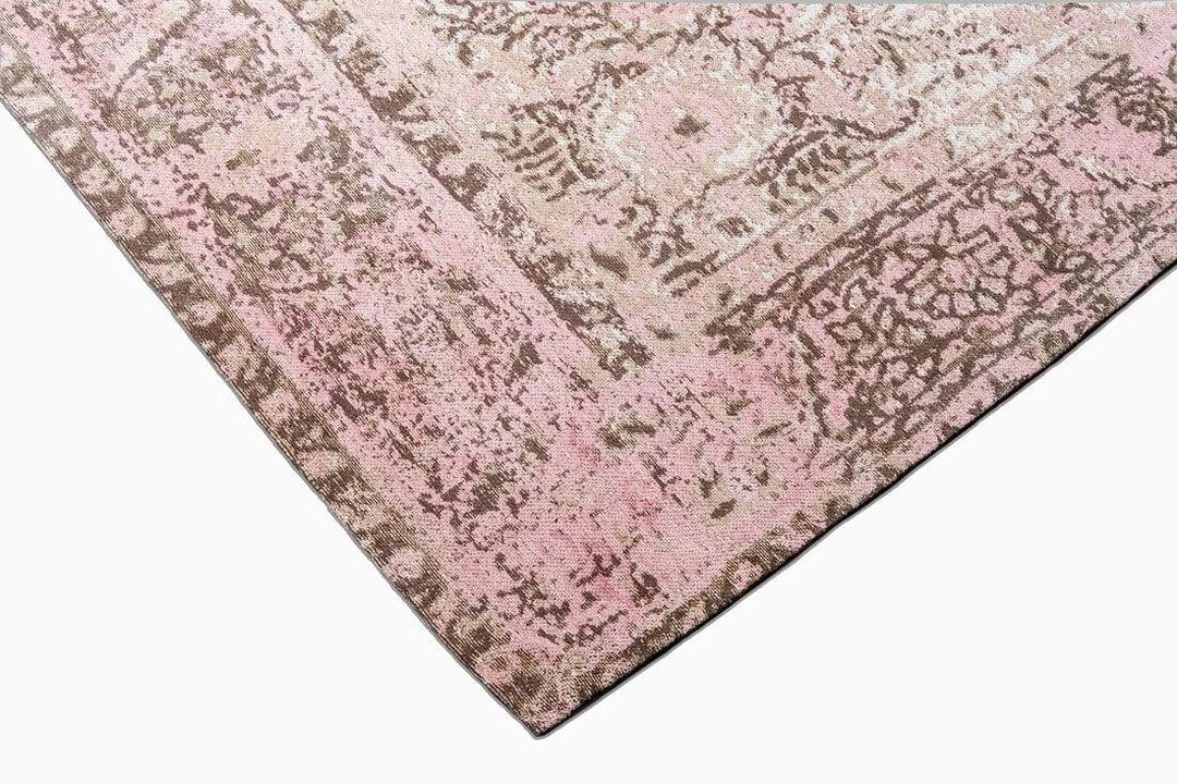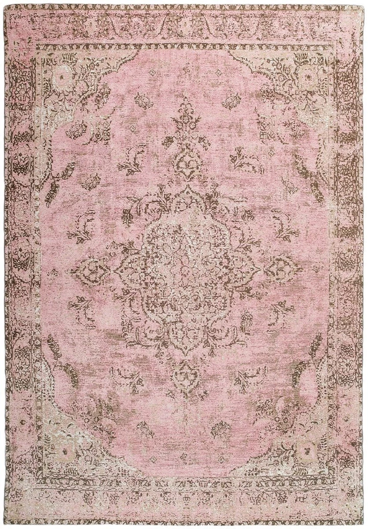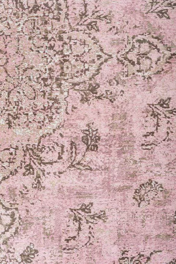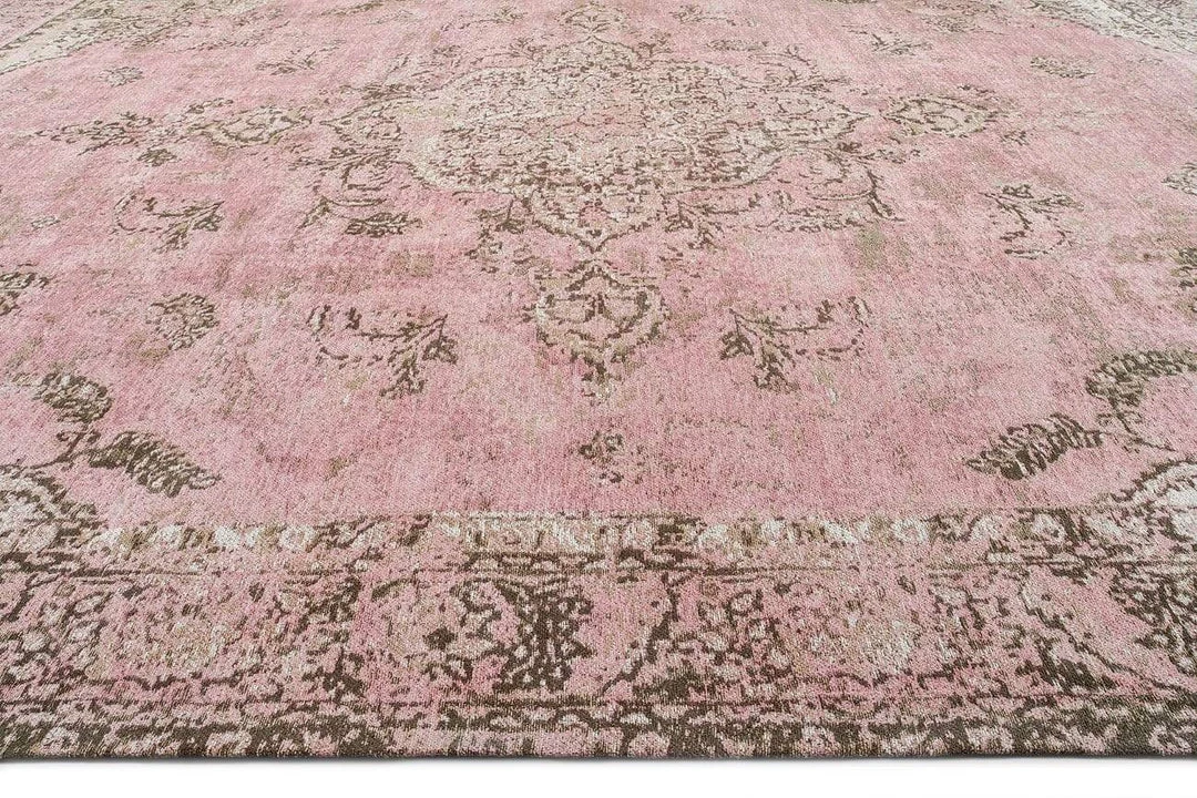 A truly unique design piece, Sahara is a flatweave style transitional rug featuring a vibrant pink backdrop and traditional floral medallion design.