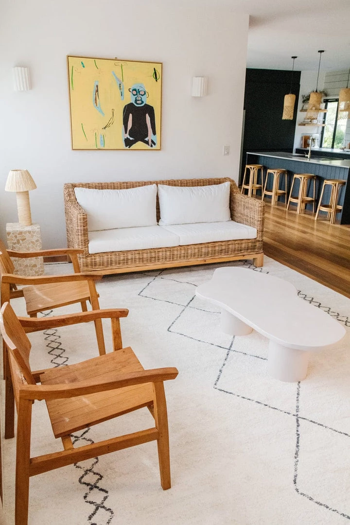 A unique abstract diamond line print with transitional tones of grey and ivory. This high design piece would blend beautifully in a modern, boho, tribal, scandi or coastal-inspired interior.