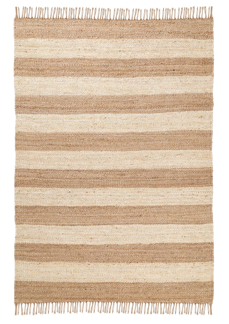 Tamsyn is a beautiful natural and bleached jute rug woven by hand into a minimal striped pattern.