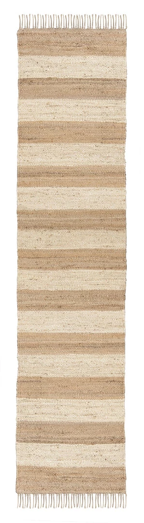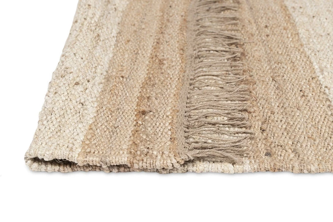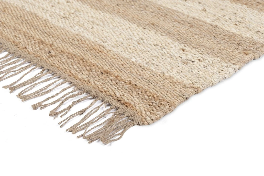 Tamsyn is a beautiful natural and bleached jute runner rug woven by hand into a minimal striped pattern.