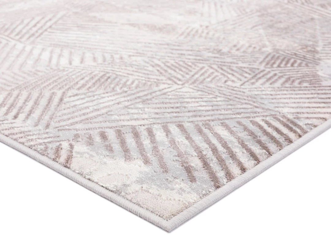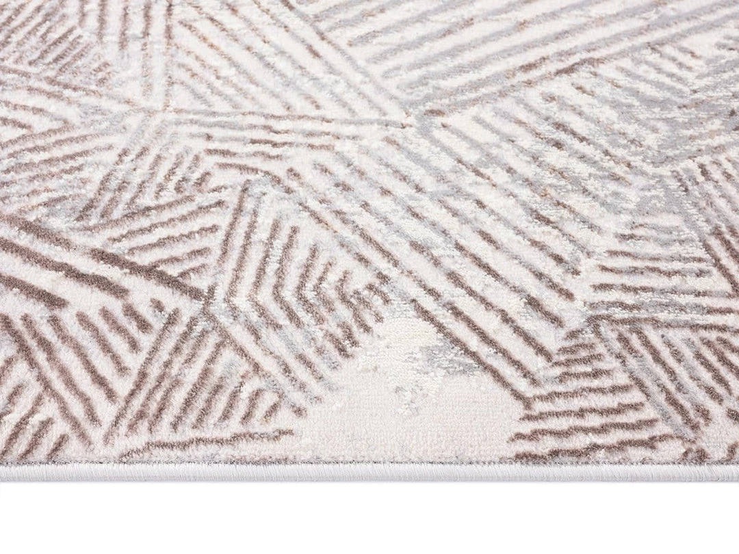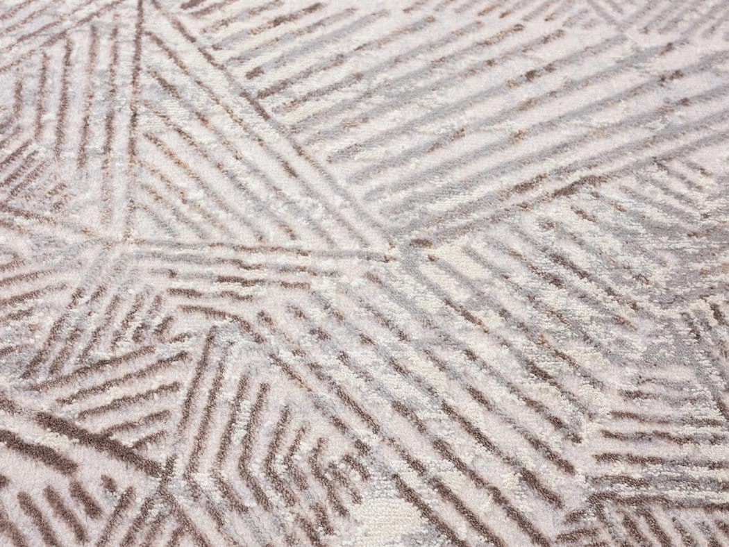 An exclusive design in the Miss Amara Collection, Zenia features a faded effect to give it a slightly distressed feel. Decorated with abstract lined tribal patterns in transitional multi-tones of ivory and brown. A unique design piece to a modern, tribal or bohemian space.