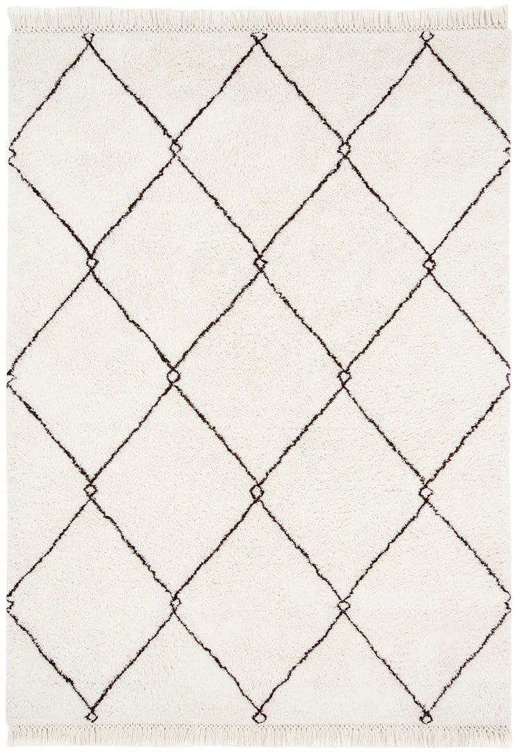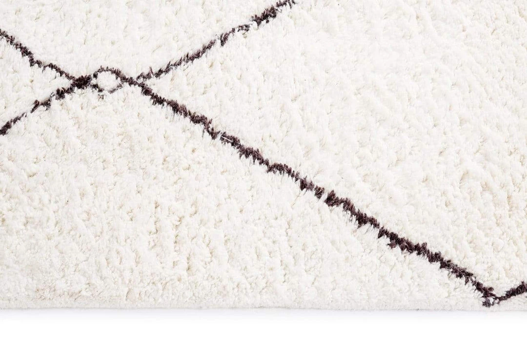 Allefra is a beautiful Berber style rug in a signature Berber colour scheme of natural New Zealand wool with slight distressed variations and a simple looped diamond pattern in contrasting black brown. Designed in-house as part of the exclusive Miss Amara Collection, the Allefra rug is a very traditional style Berber rug, crafted using a beautiful blend of natural cotton and New Zealand wool for an impossibly luxurious, dense pile of super soft fibres that are a dream underfoot.