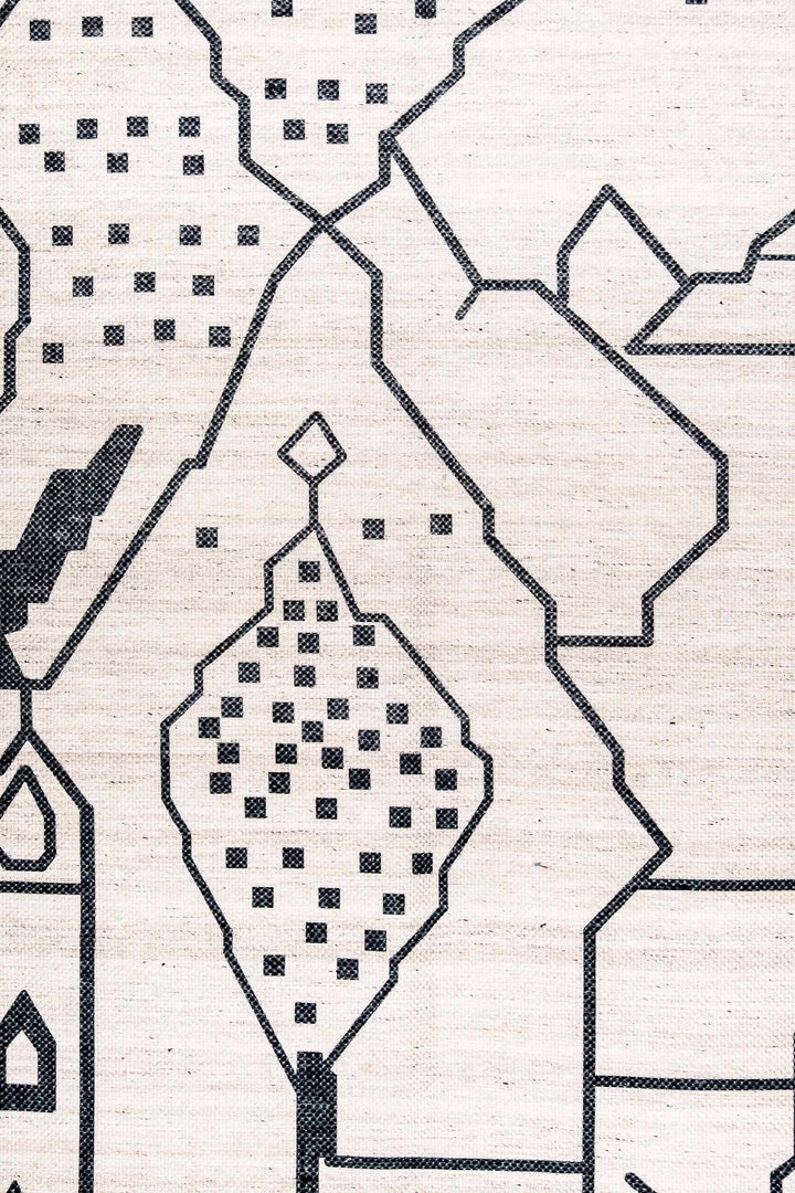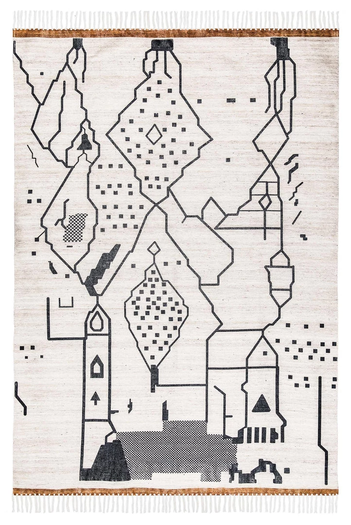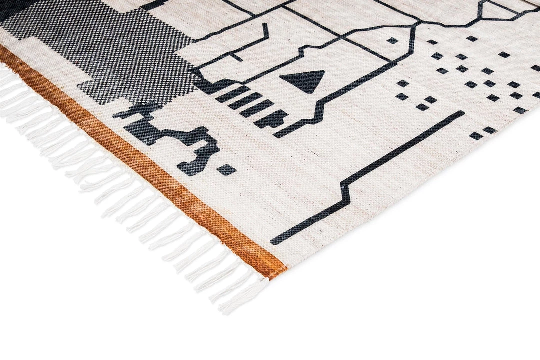 Annalise is a stunning tribal pattern PET rug with a modern palette of cream and black tones with brown lined accents.