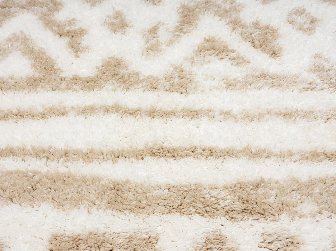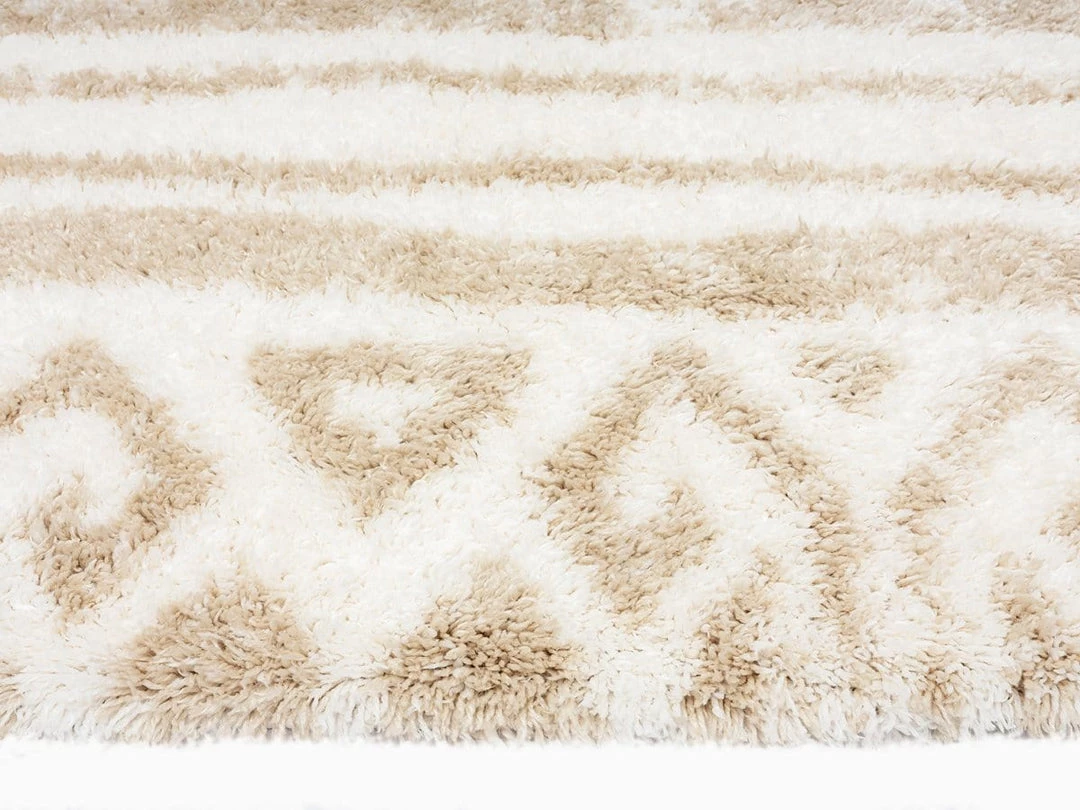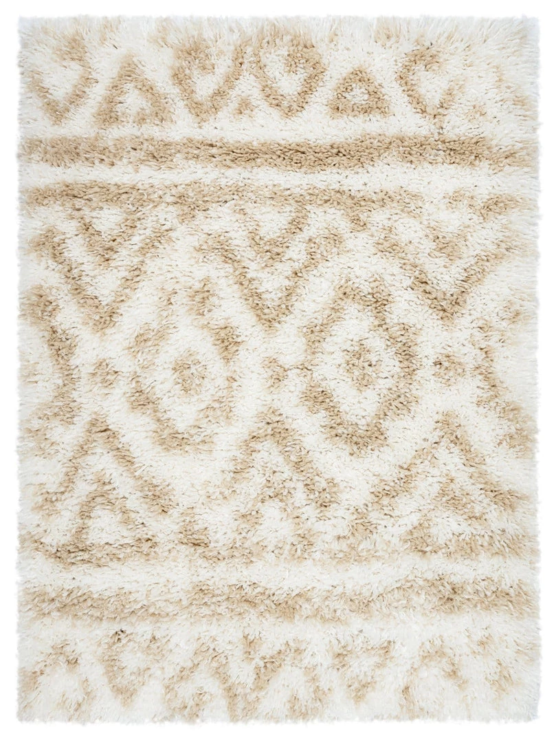 Arabella is a dreamy ivory shag style indoor mat with a tribal pattern in sand beige tones.