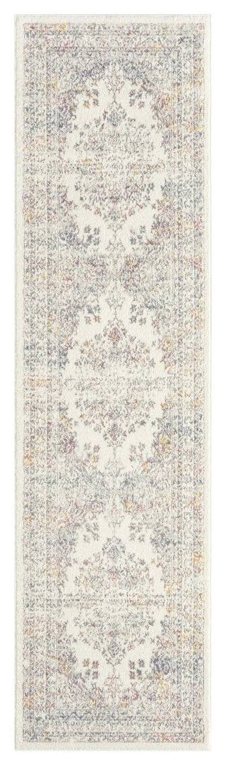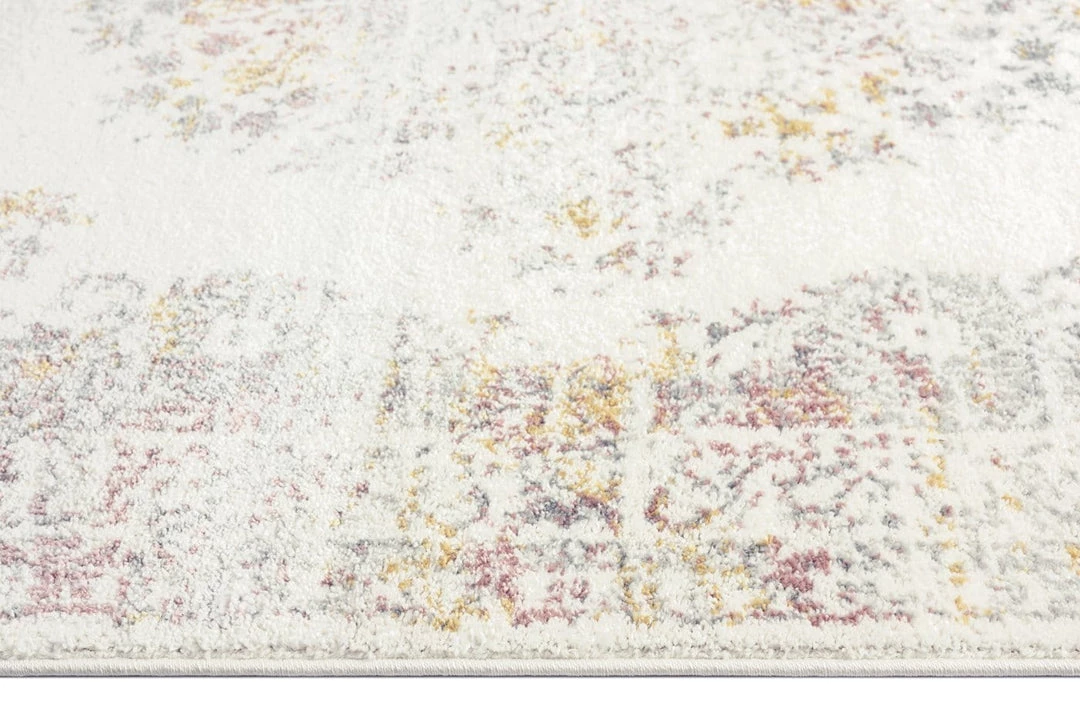 Aysha is a stunning pink, yellow and grey traditional floral medallion rug with a cream background.
