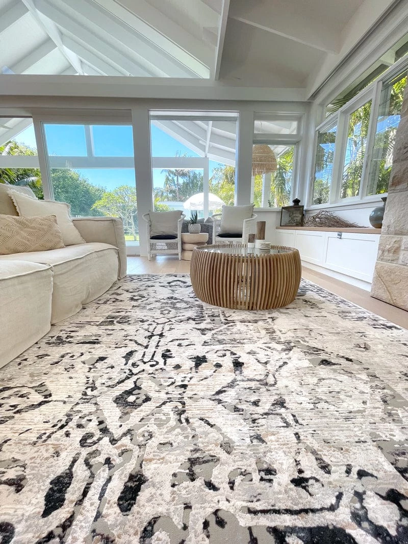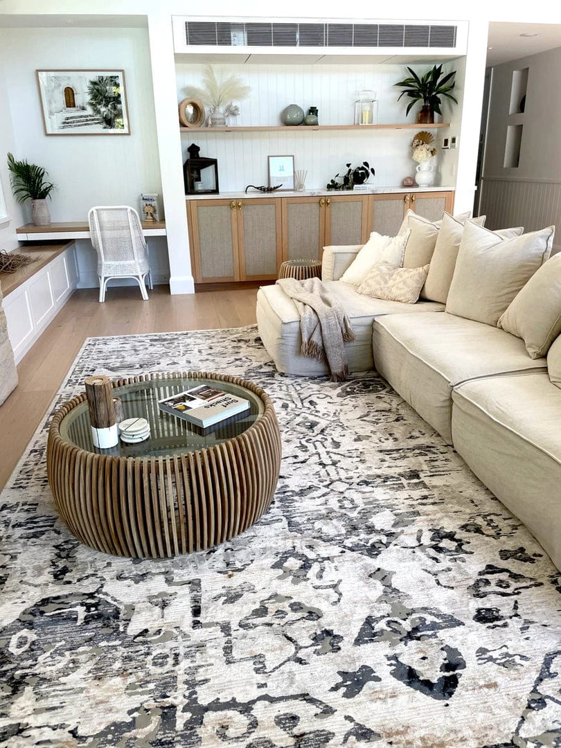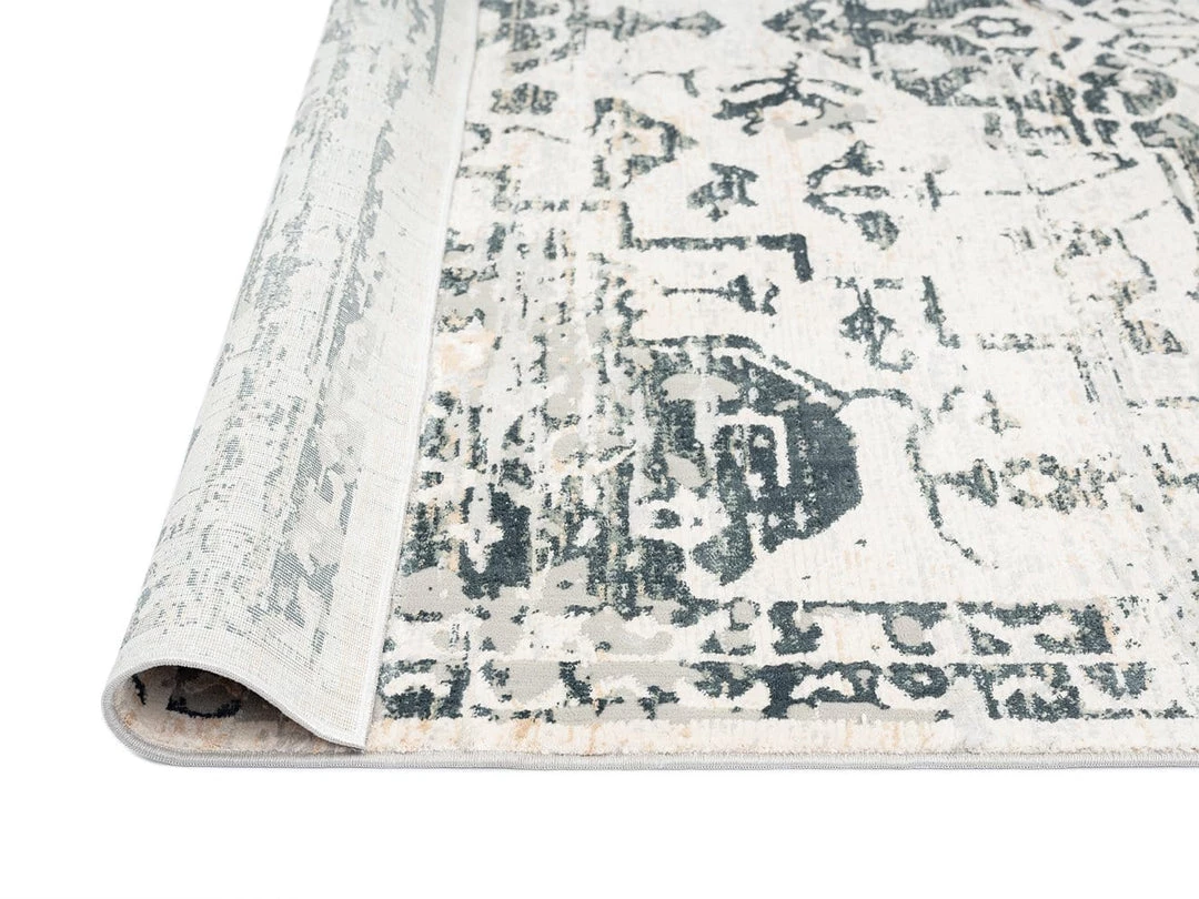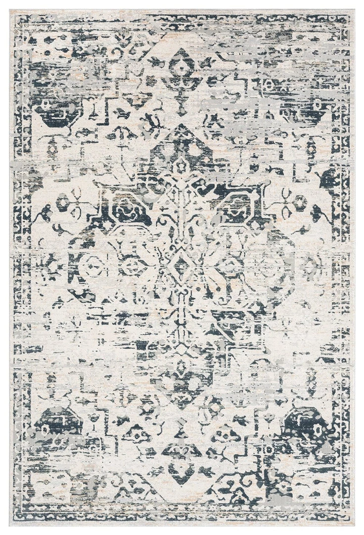 An exclusive design in the Miss Amara Collection, Bella is a bordered vintage distressed style. Decorated with elaborate floral motifs and ornate patterns in transitional multi-tones of ivory, charcoal and hints of cream. A timeless and elegant addition to a modern, classic, bohemian or vintage space.