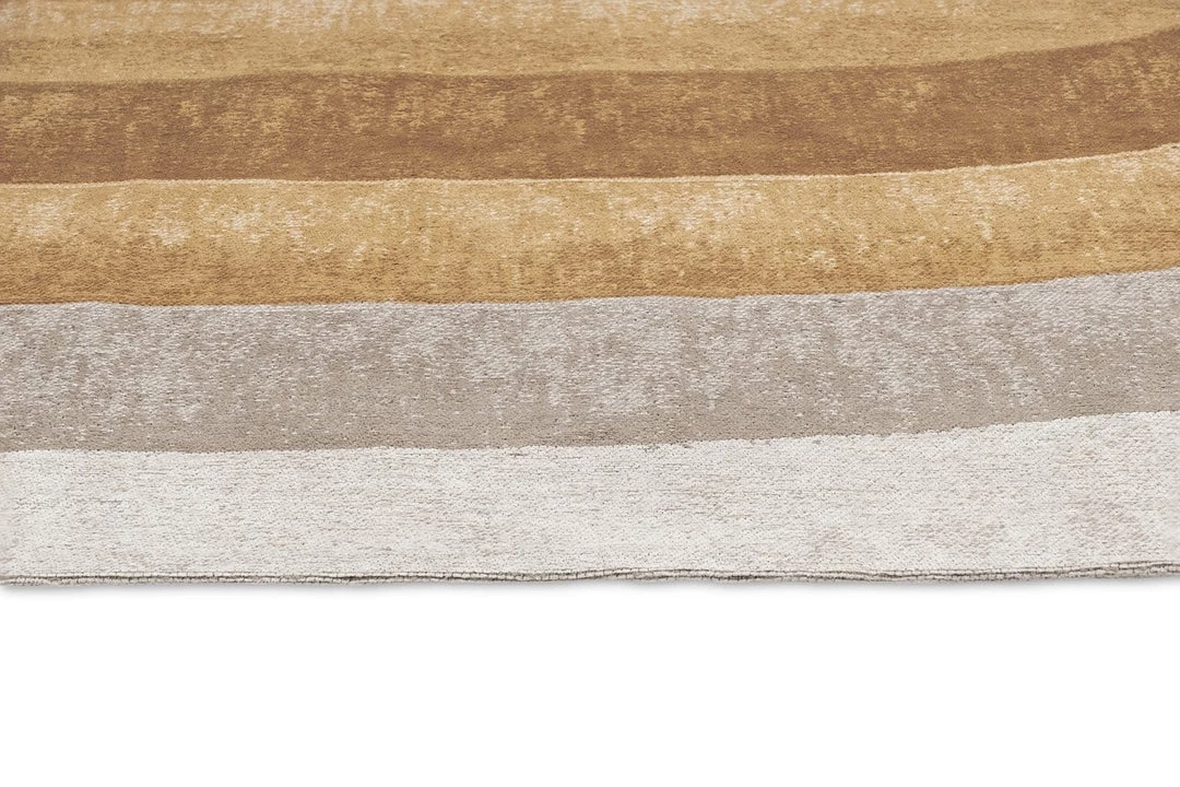 Blake is a beautiful flatweave rug with a curved line rainbow pattern in multi-tones of orange set on an ivory background.