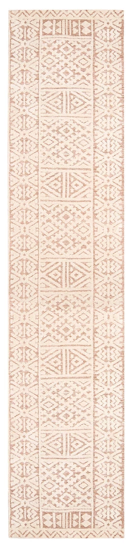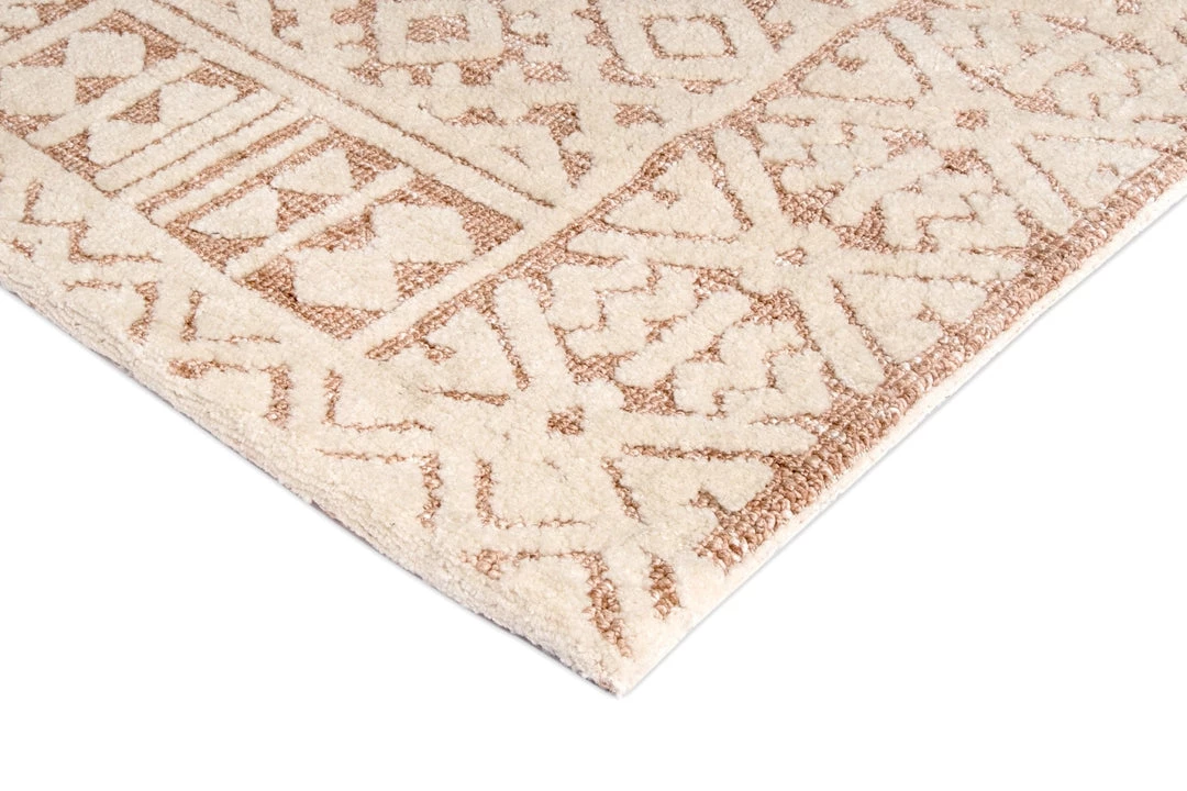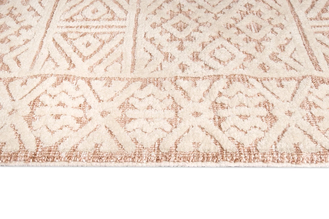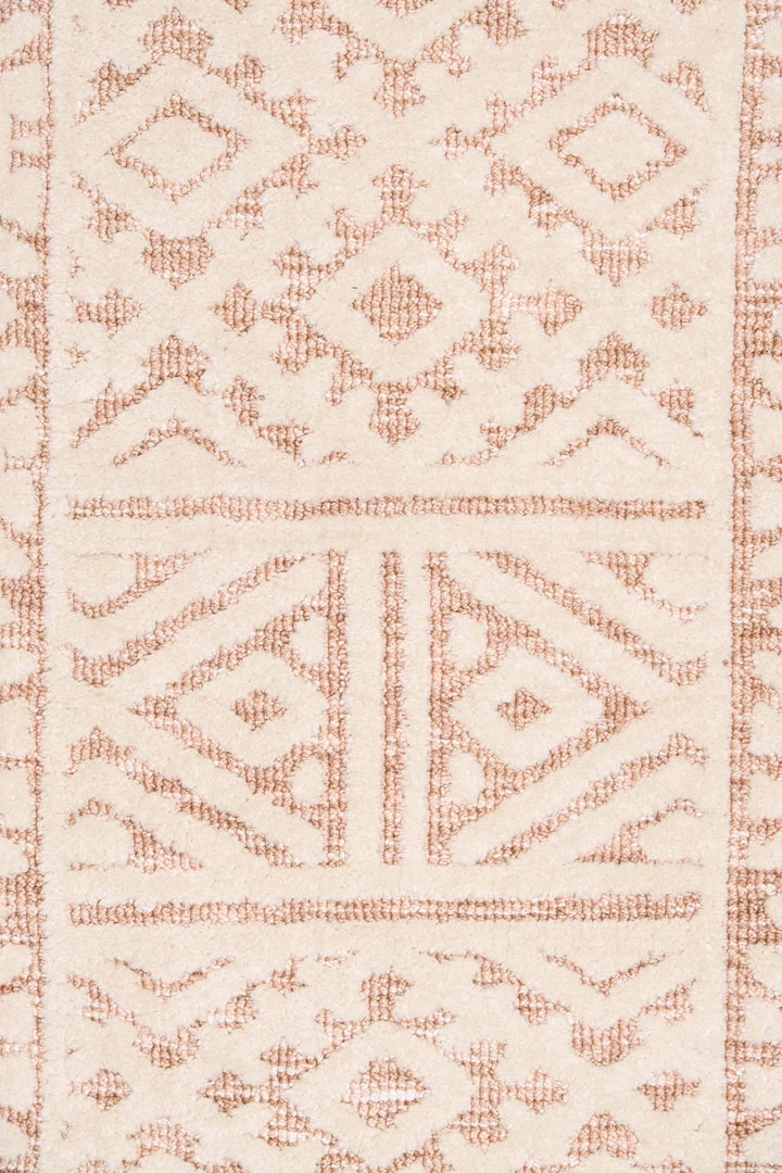 Bobbie is a stunning blush peach runner rug with a warm ivory geometric tribal textured pattern.