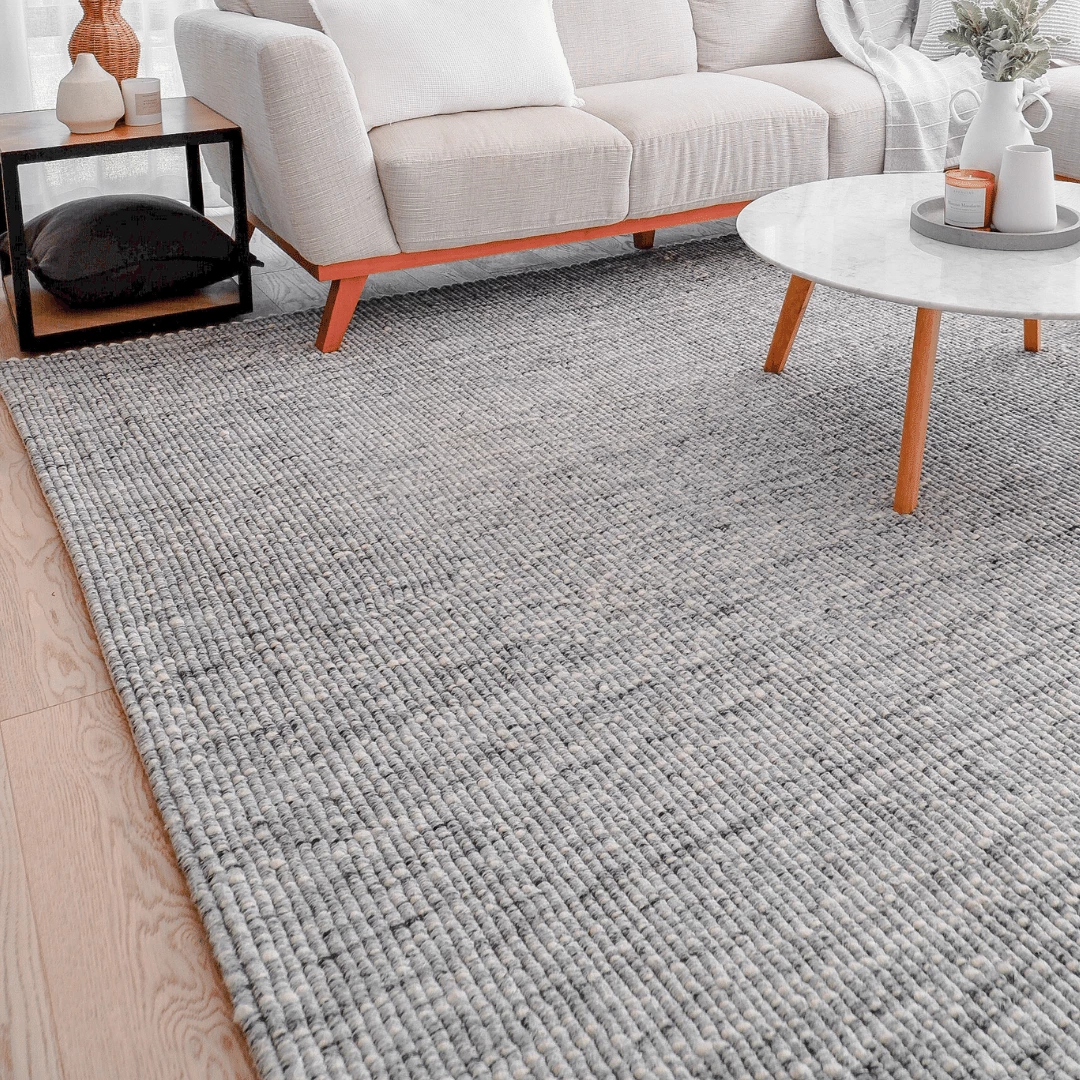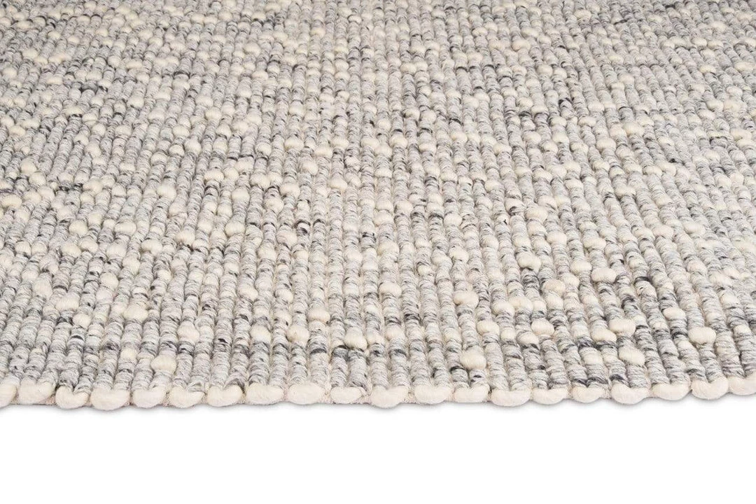 Bree is a modern braided natural wool rug featuring a palette of ivory and grey multi-toned marble.