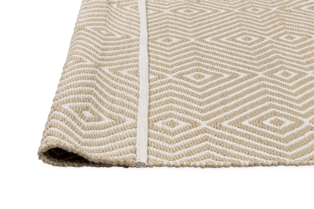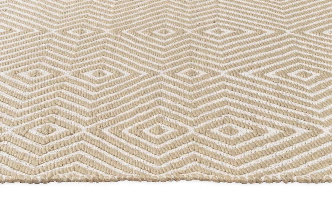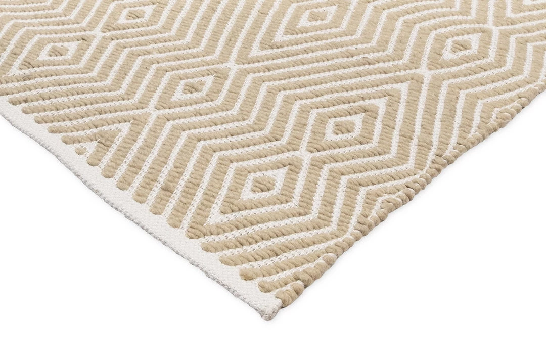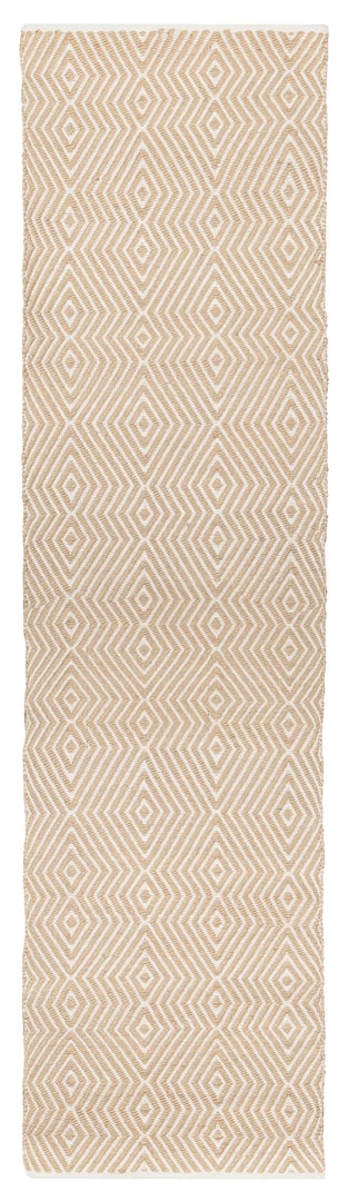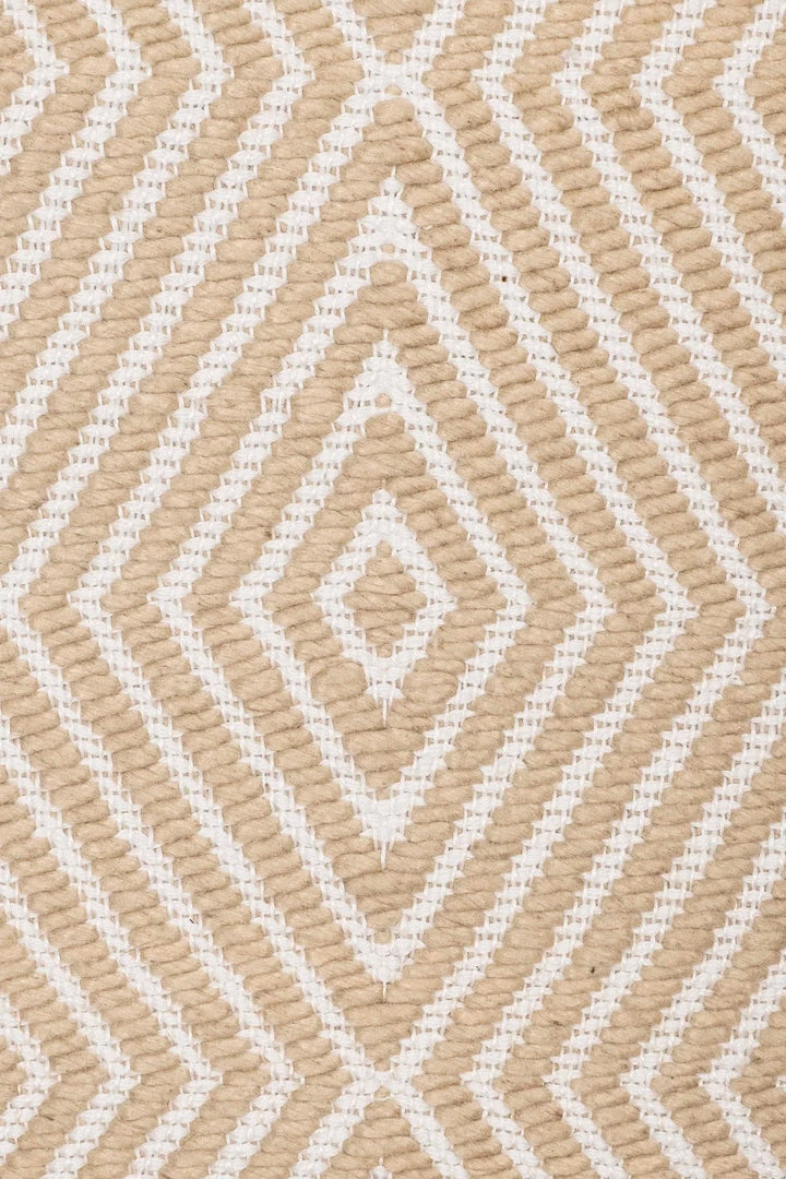 Bridie is a stunning beige and ivory PET runner rug with a tribal diamond pattern.