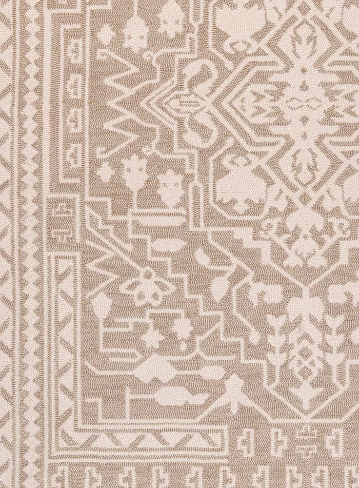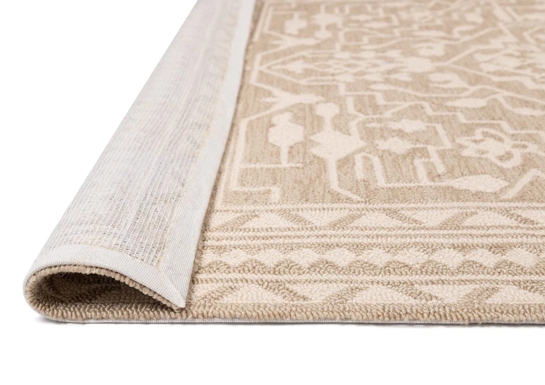 The combination of machine-made base and handmade loops create a dense 8mm pile using 100% polypropylene fibres. This hard-wearing UV-safe fibre is stain-resistant and ideal for high-traffic zones, kids and pet-friendly homes.