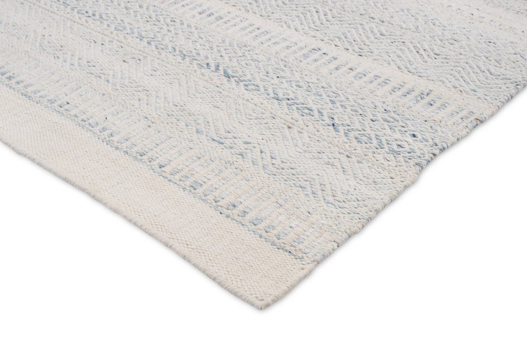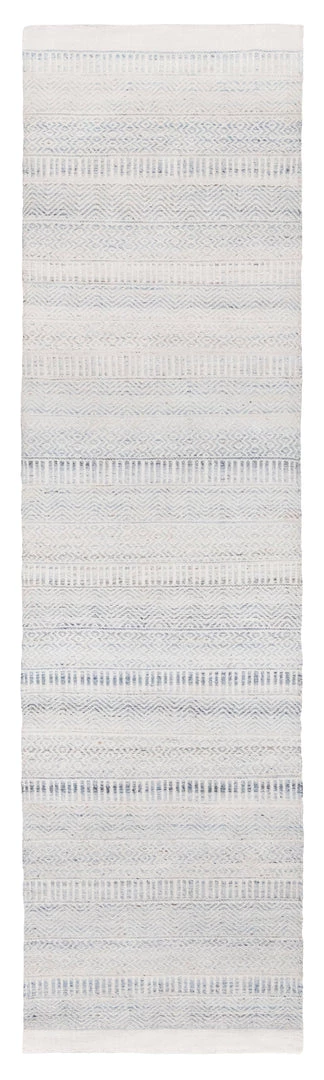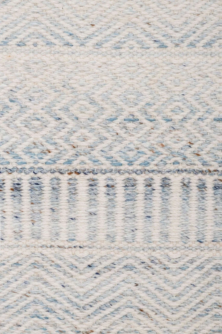 Daisy is a stunning cream and blue PET runner rug with a lined tribal diamond pattern.