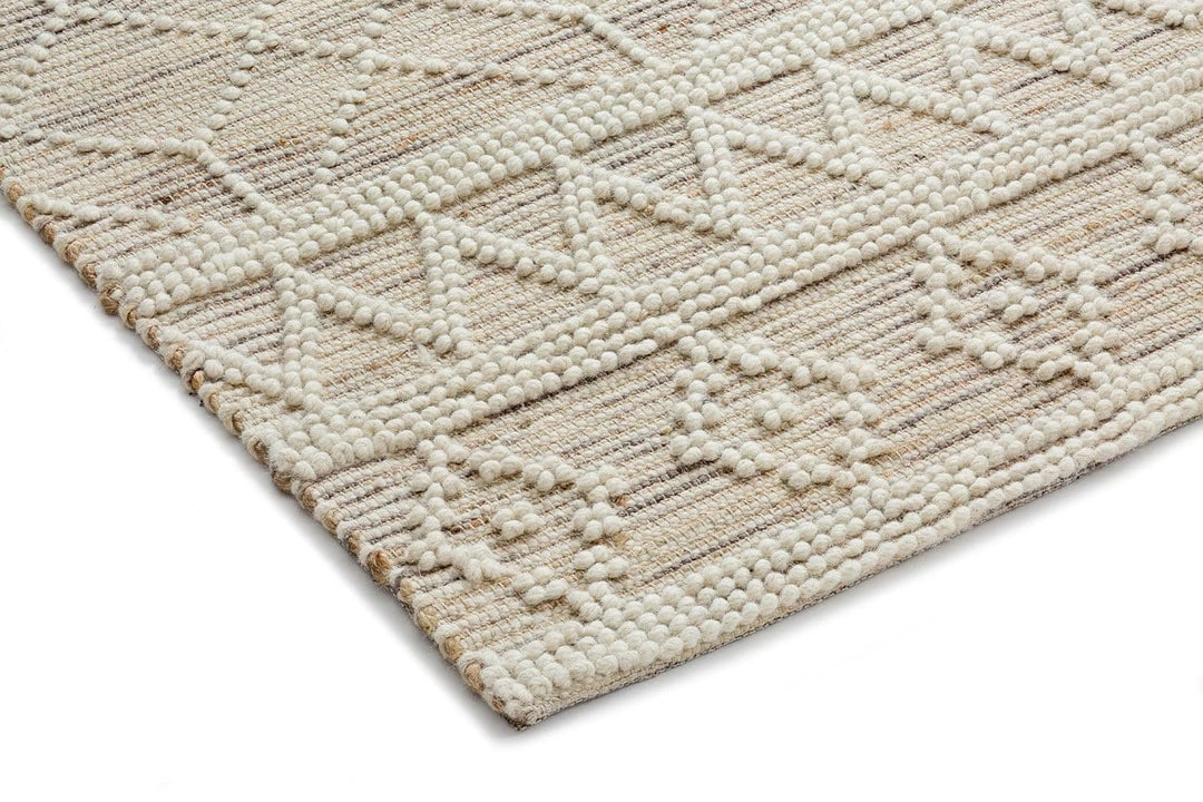 Embellished with a tribal-inspired pattern, this raised design provides a gorgeous element of texture to the rug, while the looped pearl stitch gives the look of an intricately embroidered cross stitch. This east meets west design would look right at home in a scandi inspired interior or adding a subtle tribal feel to a contemporary space.