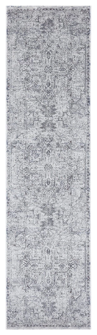 Elania is a divine grey and blue traditional distressed medallion style runner rug.