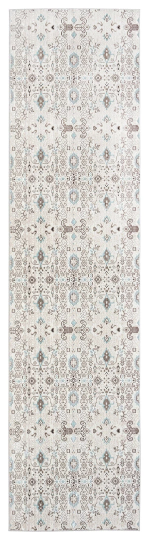 An exclusive design in the Miss Amara Collection, Evie is a vintage distressed style runner rug topped with elaborate floral motifs and patterns in multi-tones of brown, grey and blue. Embellished with luxurious touches of silver for added sheen and dimension.