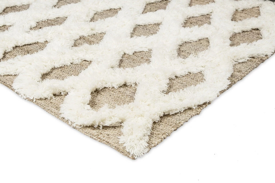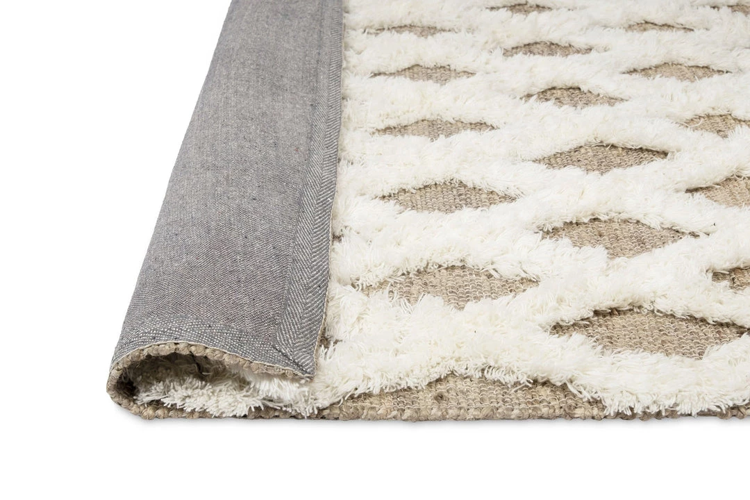 Hand-woven in India into a 50mm high-low pile made from 65% eco-friendly jute and 35% New Zealand wool.