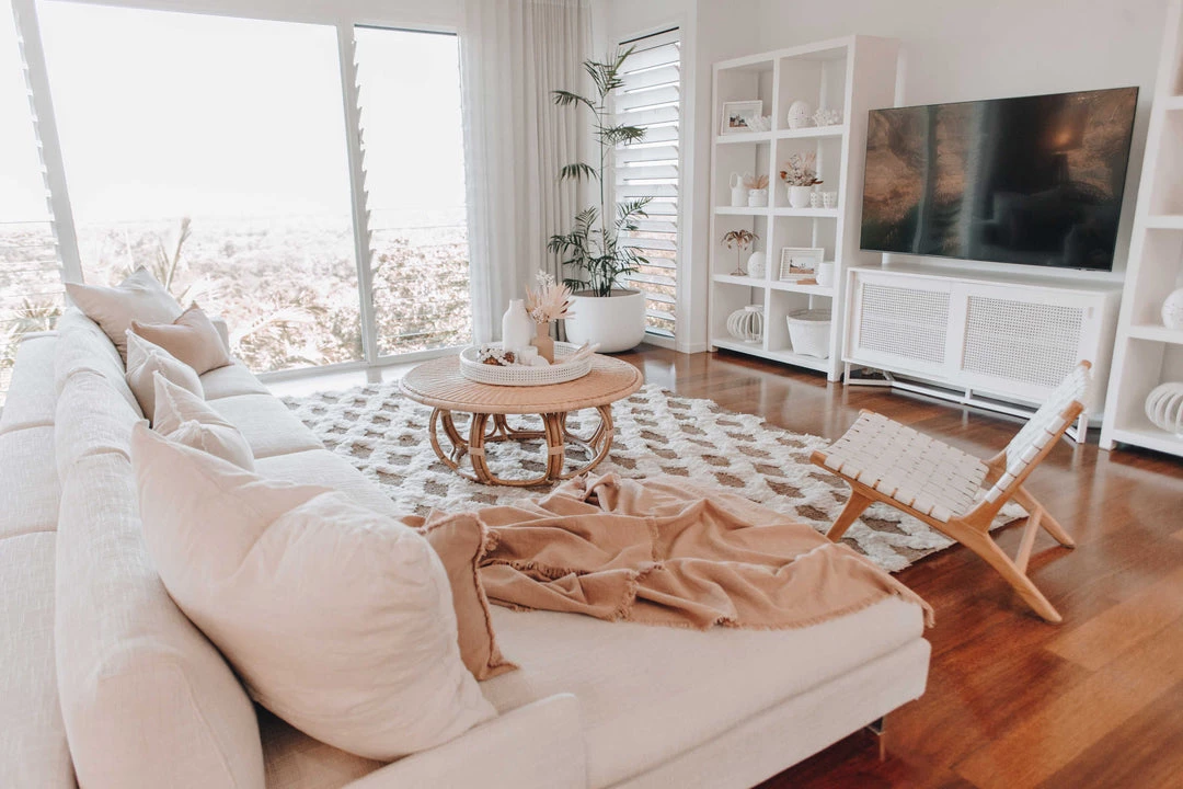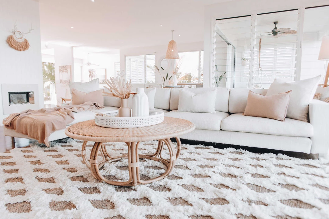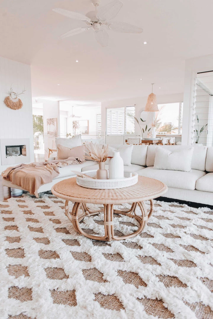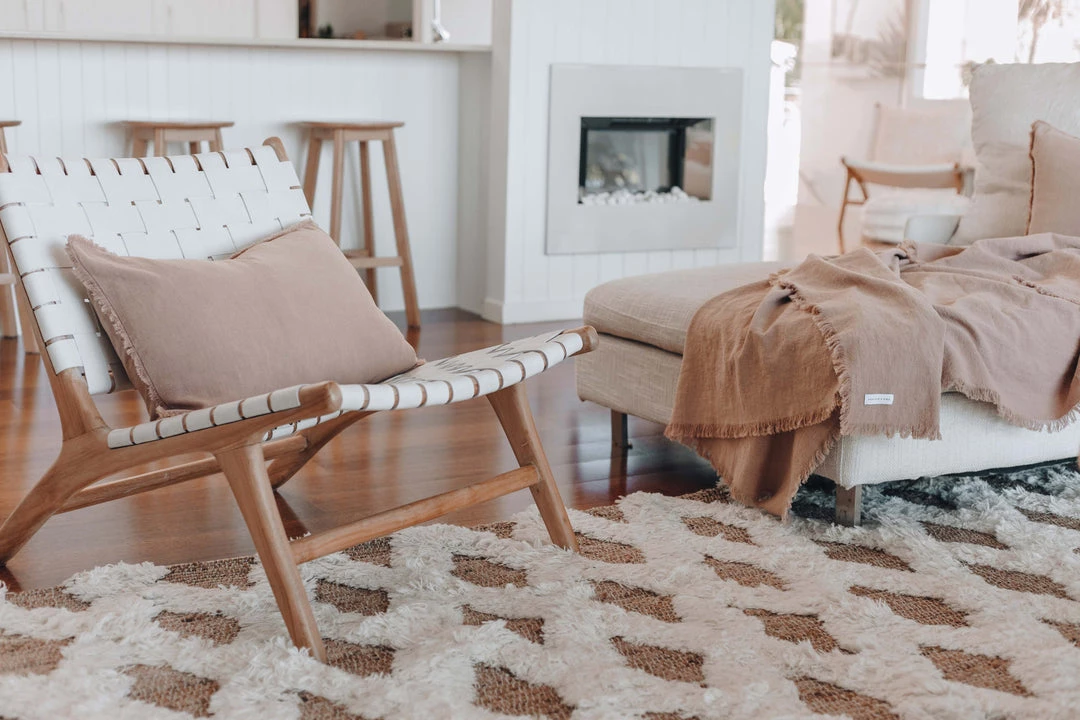 Fallon features the stunning natural texture and colour variations of this organic material, while the tufted diamond pattern adds an extra tactile quality. The perfect addition to a modern, minimal, bohemian and coastal style space!