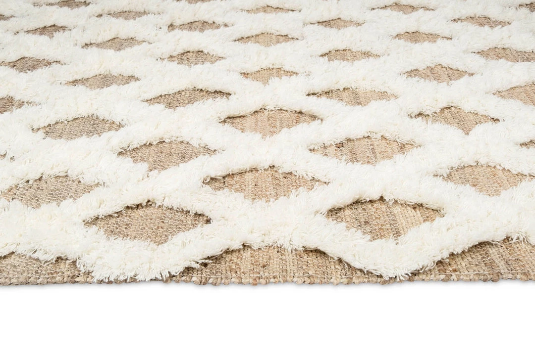Fallon is a beautiful brown jute rug with a diamond tufted design in cream ivory.