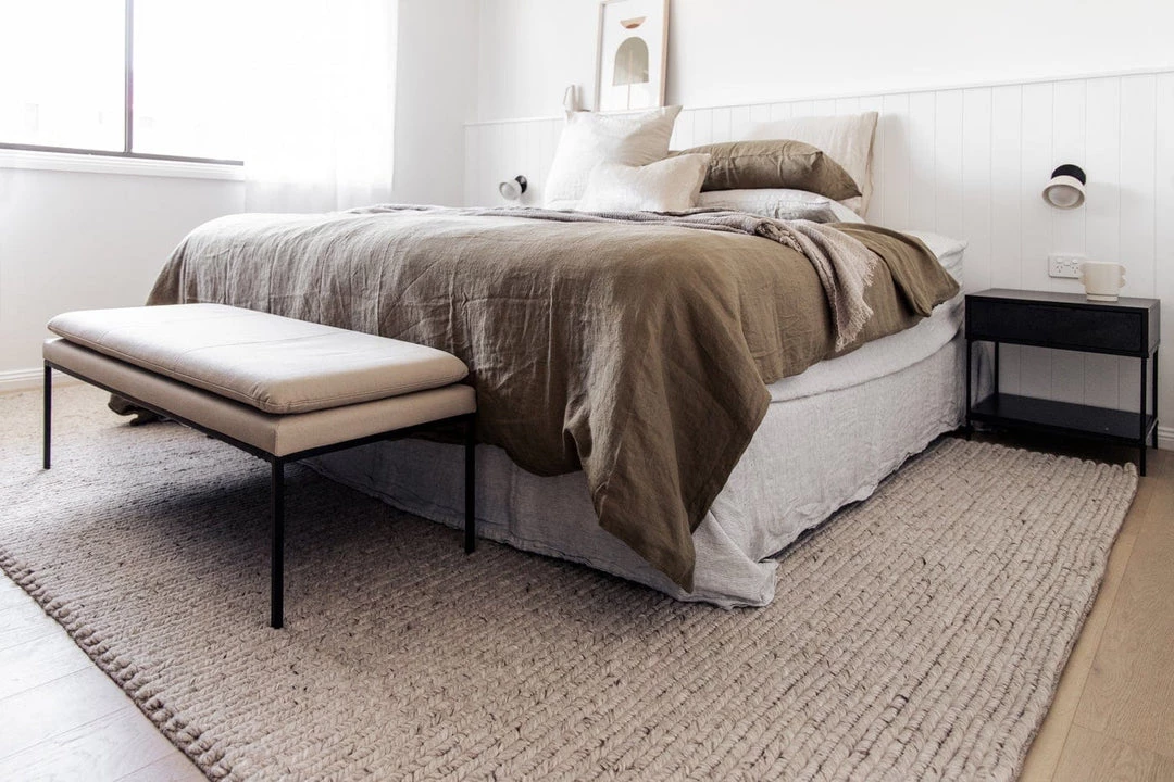 Handwoven in India, Freya has a luscious high pile of thick wool fibres that have been braided in a beautiful herringbone pattern and feels just as dense and spongey underfoot as it looks.