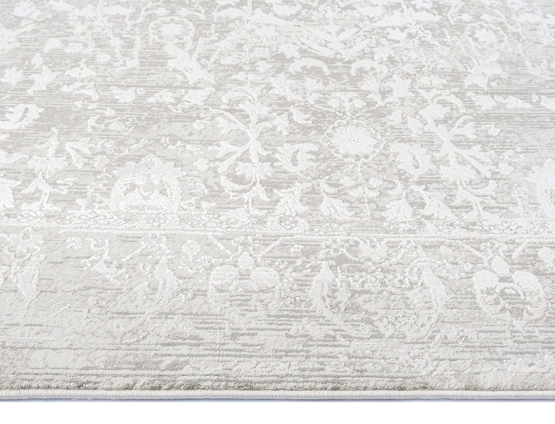 Gabriella is a beautiful grey rug with a traditional bordered floral motif in ivory.