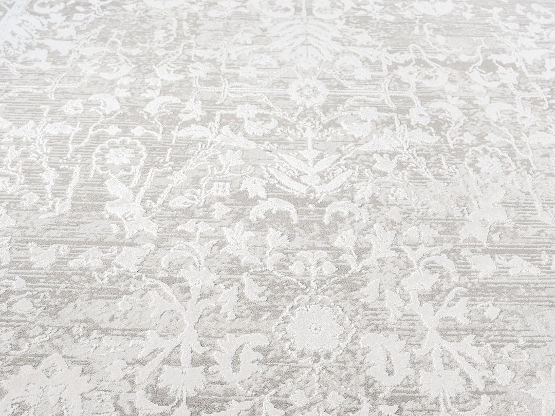 An exclusive design in the Miss Amara Collection, a distressed style decorated with elaborate floral motifs in transitional multi-tones of grey and ivory. Featuring an intentionally created distressed look to give it a vintage feel (a treatment called ‘abrash’ to describe colour variations common in antique rugs). A timeless and elegant addition to a modern, tribal, coastal, bohemian or vintage space.