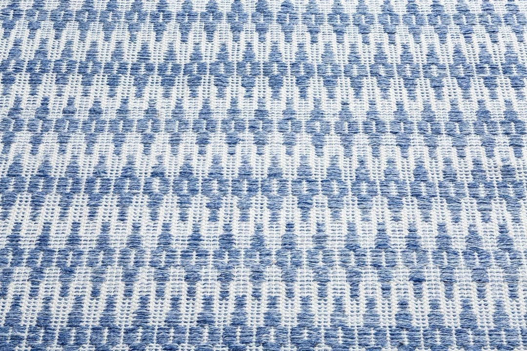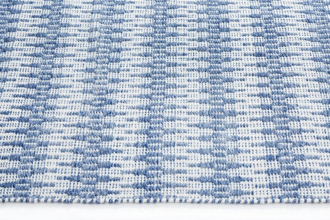 Designed with busy households in mind for the Lifestyle Miss Amara Collection, Halie is a beautiful blue, tribal flatweave rug, hand-woven from eco-friendly PET fibres made from recycled plastic bottles. Halie features a contemporary tribal diamond in vibrant blue and contrasting ivory white, a classic colour combination that would look gorgeous in a coastal home.