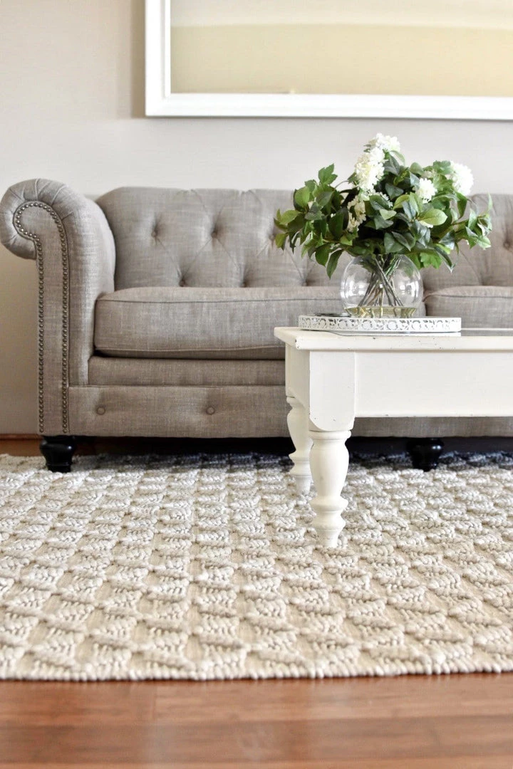Inspired by Nature, Hanna is a contemporary wool blend rug in a gorgeous creamy ivory colour and embroidered leaflets pattern, designed in house and made exclusively for the Miss Amara Collection.