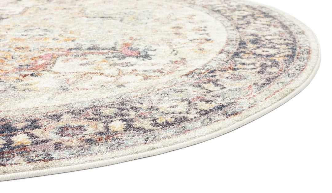A modern design with an old world charm, Haven is a bordered vintage style that’s decorated with elaborate floral motifs and ornate patterns in transitional multi-tones of cream, purple, blue, pink and orange. A timeless and elegant addition to a modern, classic, bohemian or vintage space.