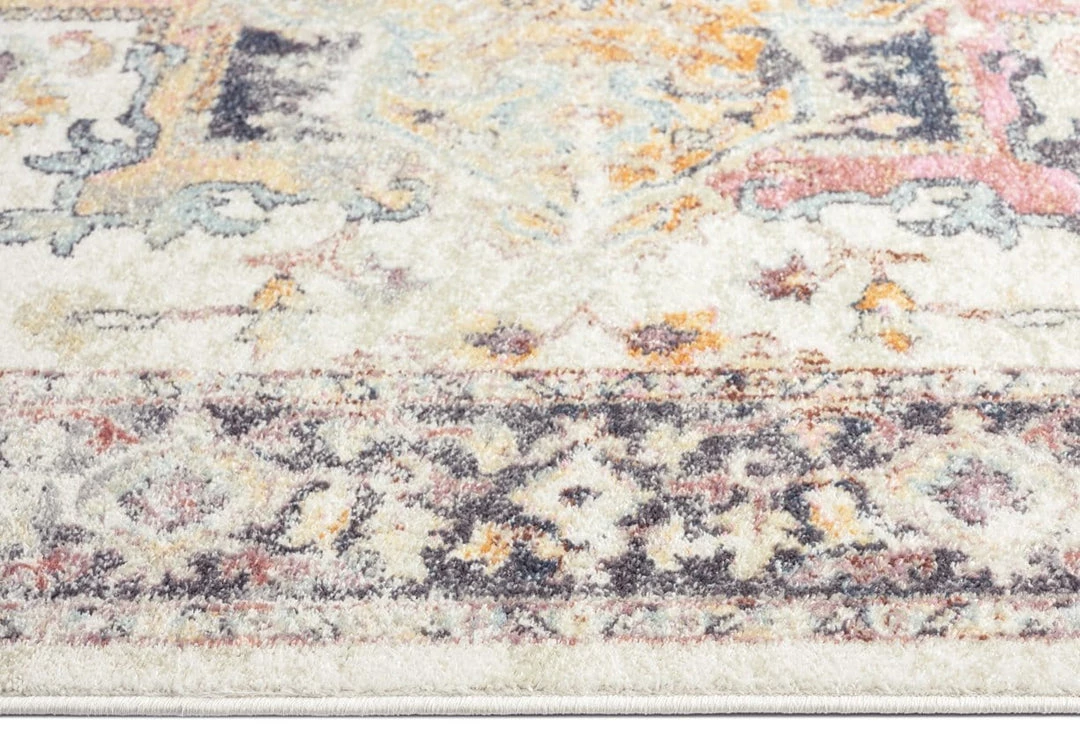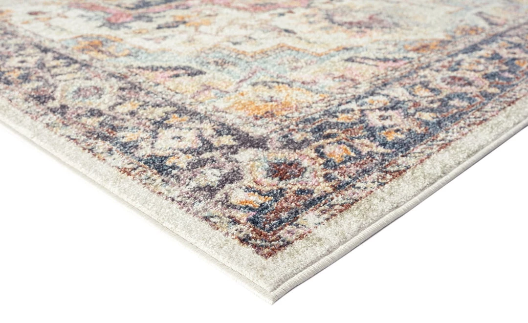A modern design with an old world charm, Haven is a bordered vintage style that’s decorated with elaborate floral motifs and ornate patterns in transitional multi-tones of cream, purple, blue, pink and orange. A timeless and elegant addition to a modern, classic, bohemian or vintage space.